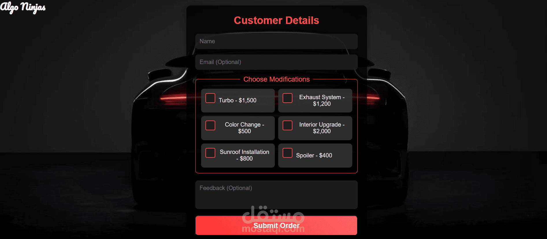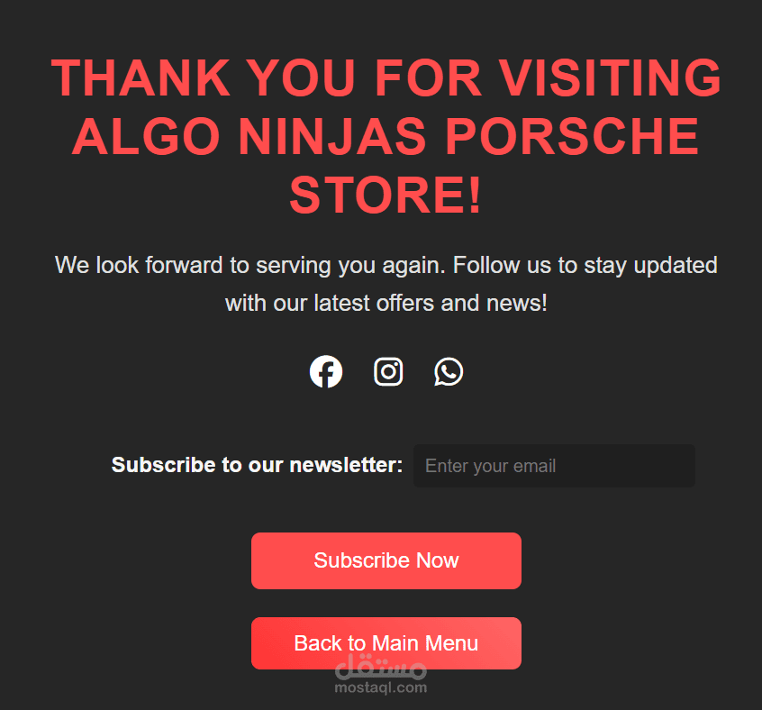 الموقع قابل للاستخدام لعرض أي نوع من المنتجات (سيارات، إلكترونيات، ملابس، وغيرها)، ويتميز بتنسيق منظم، ألوان متناسقة، وتجربة مستخدم سهلة وسلسة تعكس مستوى احترافي عالي في التصميم.