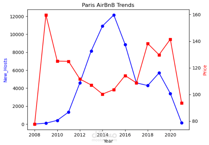 تحليل بيانات Airbnb في باريس باستخدام Python، يتضمن تنظيف البيانات وتحليل متوسط الأسعار حسب الأحياء وعدد الضيوف، بالإضافة إلى دراسة تطور عدد المضيفين عبر السنوات. تم استخدام مكتبات Pandas وNumPy وMatplotlib وSeaborn لإنشاء تحليلات ورسوم بيانية واستخراج Insights حول تأثير قوانين 2015 على السوق.