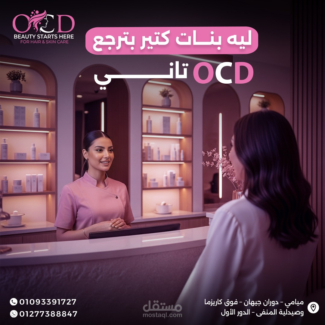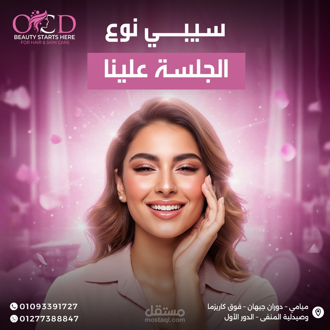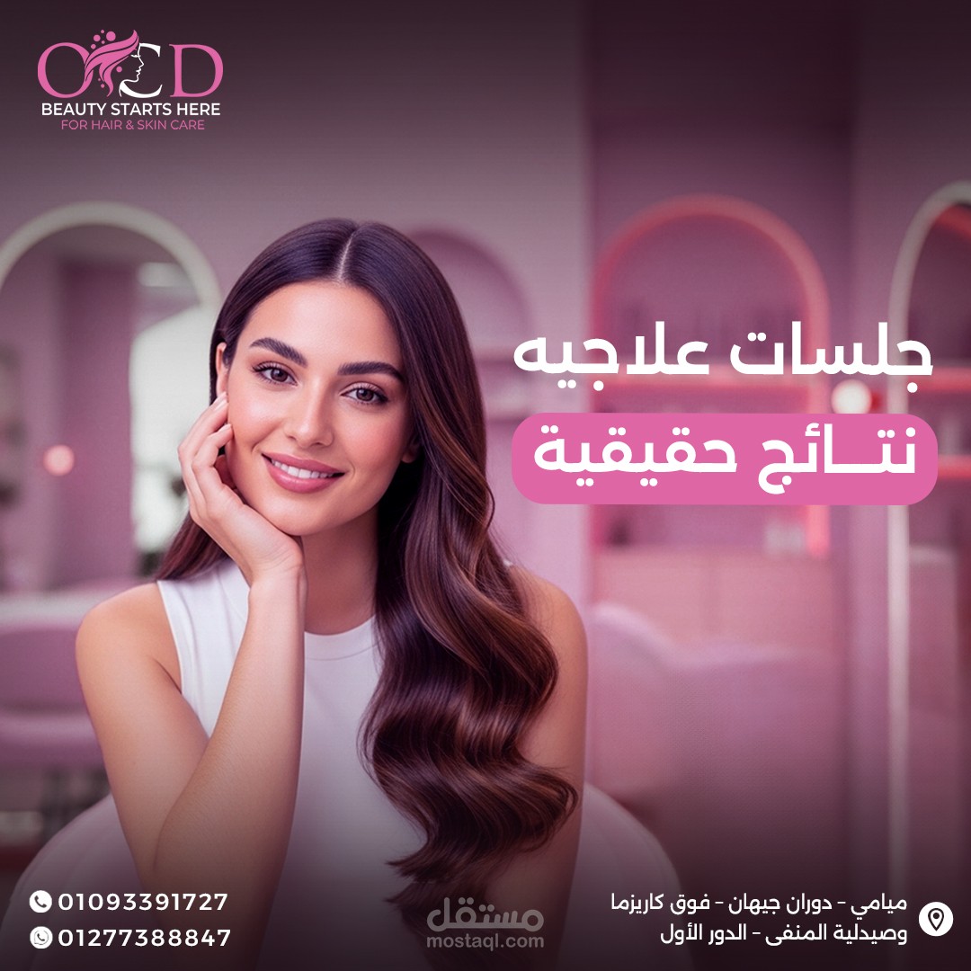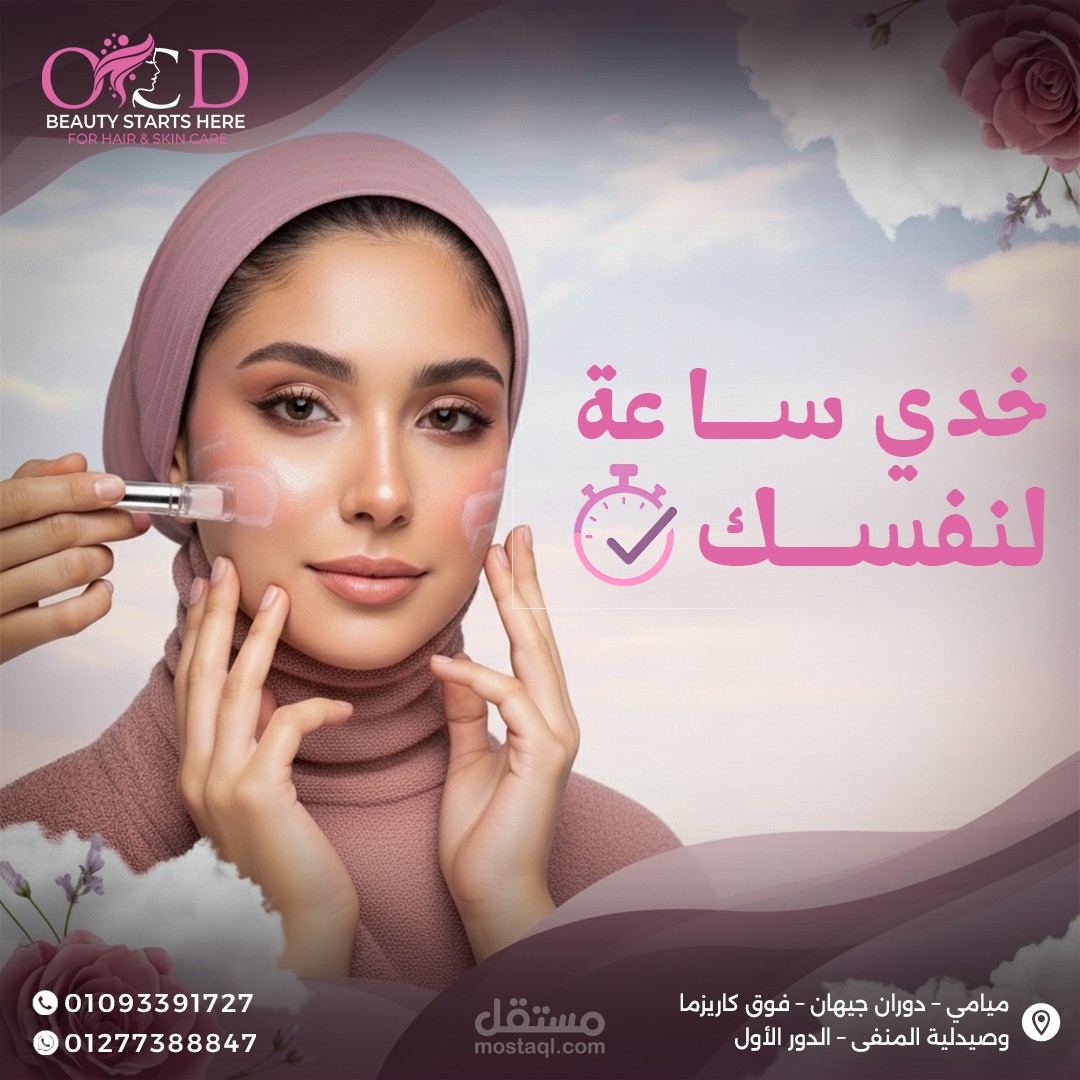 اعتمدت على أسلوب Minimal & Luxury Design لإيصال إحساس بالنظافة، الاحترافية، والاهتمام بالتفاصيل، بما يتناسب مع طبيعة مراكز التجميل.