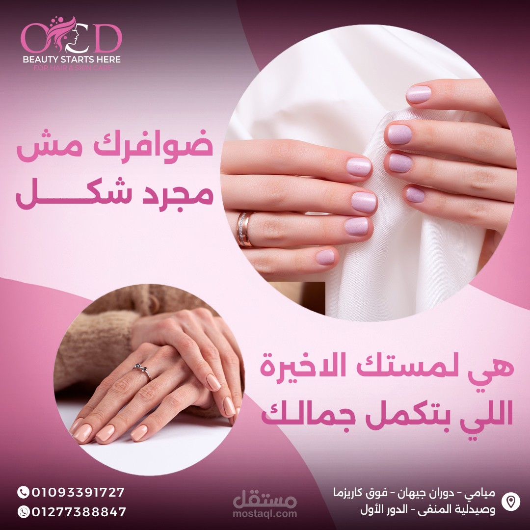 إبراز الخدمات مثل العناية بالبشرة، الشعر، والأظافر