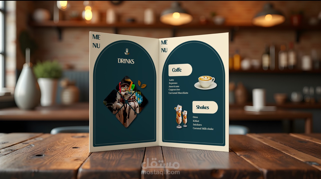 This project features a café branding concept including logo design and menu layout created using Adobe Photoshop. The goal was to develop a clean and modern menu that presents the dishes clearly while maintaining an elegant and inviting restaurant aesthetic.
