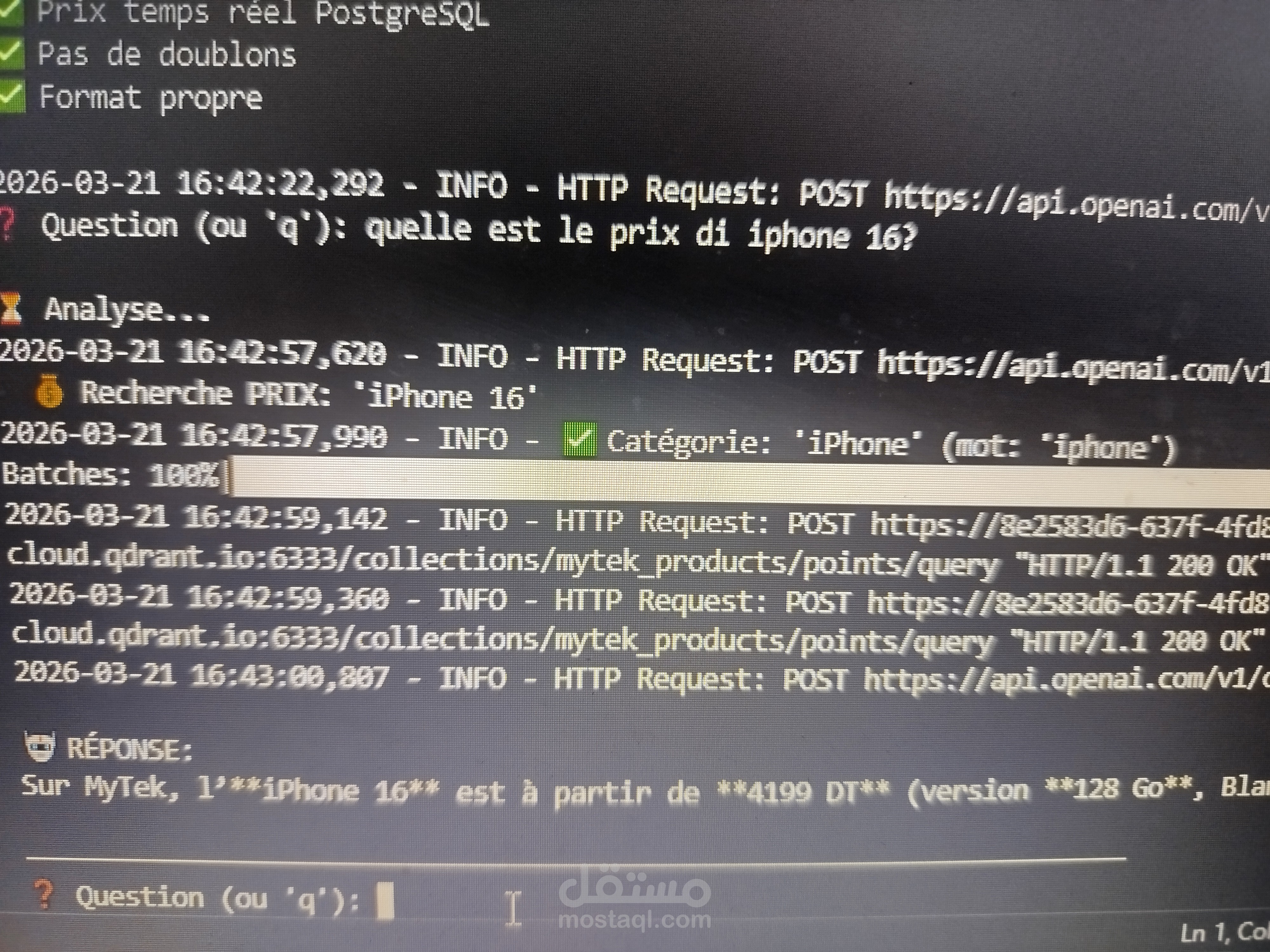 This intelligent conversational interface serves as a sophisticated bridge between complex e-commerce data and actionable consumer insights, specifically tailored for the Tunisian market. By integrating LangChain with OpenAI's large language models, the chatbot acts as a specialized AI agent capable of navigating real-time data from platforms like Mytek through advanced web scraping. Users can engage in natural, intuitive dialogue to query specific product details, track price fluctuations, and receive automated alerts without needing technical expertise. The system’s core strength lies in its ability to transform unstructured web data into precise, conversational responses, ensuring that every query about product availability or market trends is met with immediate, data-driven clarity.