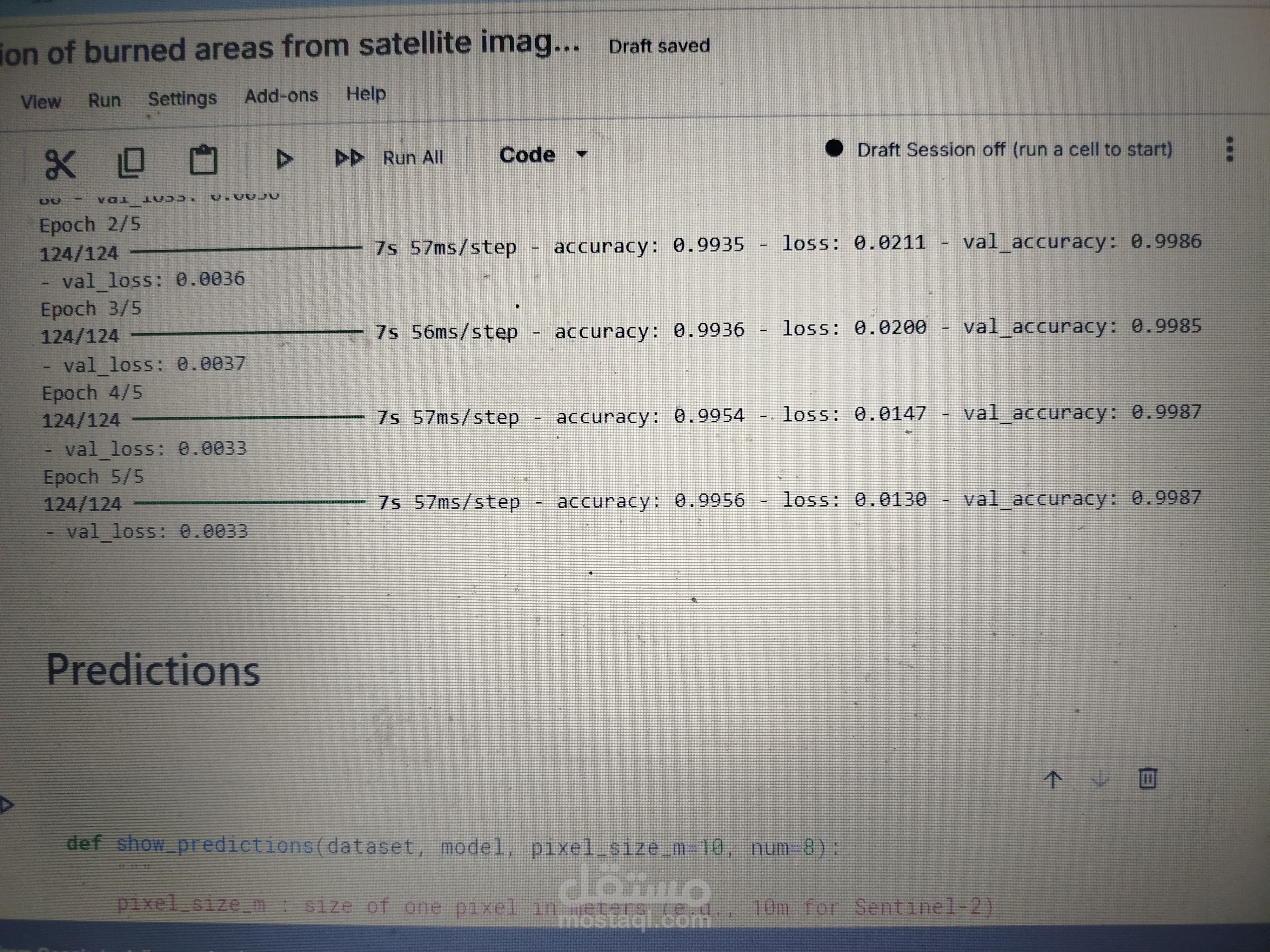 This project leverages a U-Net deep learning architecture implemented in TensorFlow to perform high-precision semantic segmentation of burned areas from multi-spectral satellite imagery. By utilizing an encoder-decoder framework, the model captures complex spatial features and spectral signatures to accurately delineate fire scars, distinguishing them from similar land covers like shadows or dark soil. My solution includes a complete end-to-end pipeline—from preprocessing raw satellite bands and handling class imbalance with specialized loss functions (such as Dice or Focal loss) to generating actionable, high-resolution geo-masks. This automated approach provides a rapid, scalable, and highly accurate alternative to manual mapping, offering essential data for environmental impact assessment and forest recovery management.