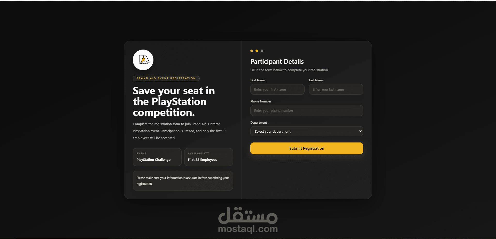 قمت ببناء صفحة هبوط متجاوبة ونموذج تسجيل مخصص لتسجيل الموظفين في الفعاليات بسهولة.