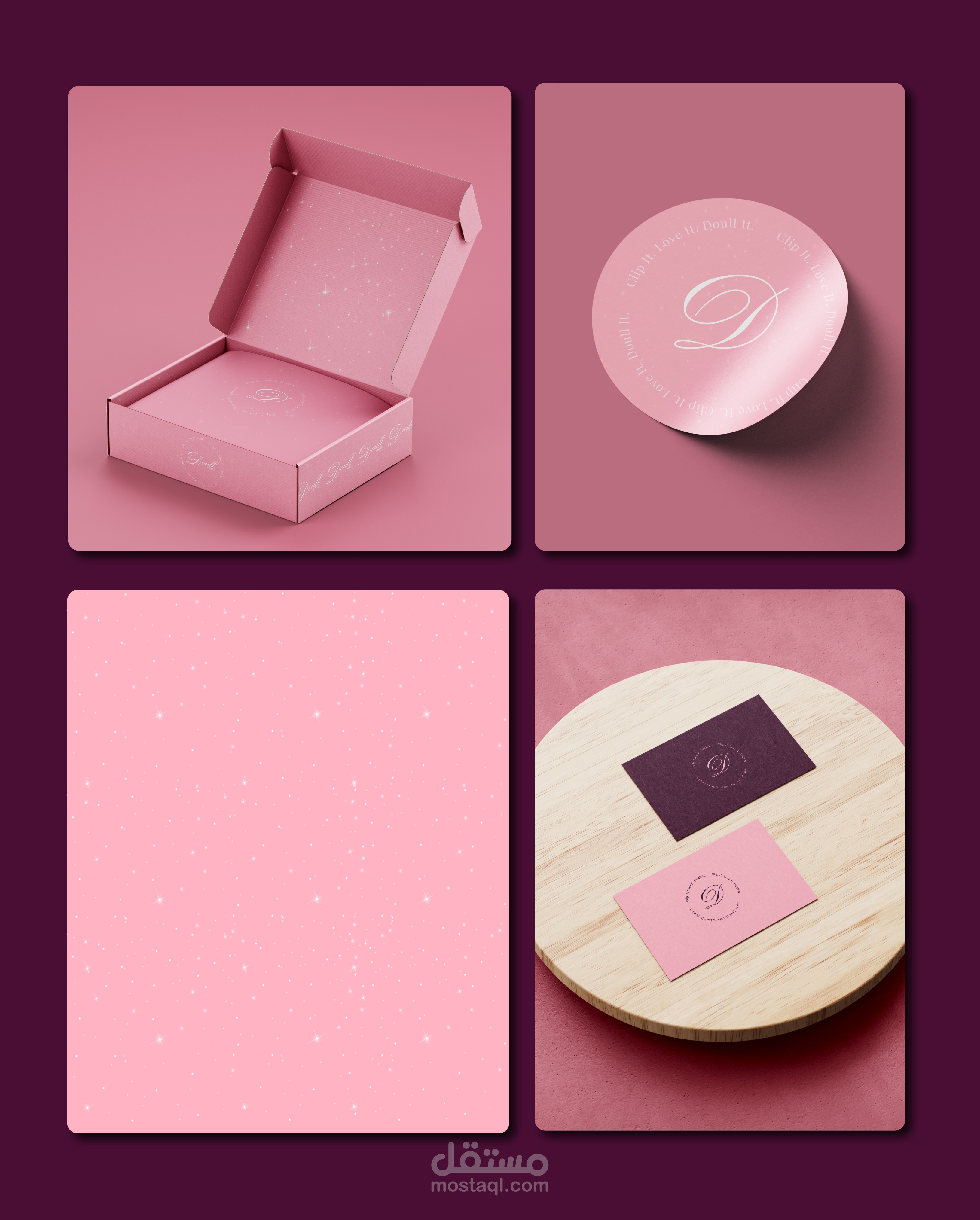 The logo reflects this essence perfectly — a graceful script typeface (Kuenstler Script) gives it a soft, luxurious flair, while the bold serif (Playfair Display) used for “Store” adds a timeless touch. Wrapped in a dreamy color palette of blush pink, rich plum, and white, Doull blends cuteness with class. It’s not just an accessory shop — it’s a lifestyle for those who love details that speak.