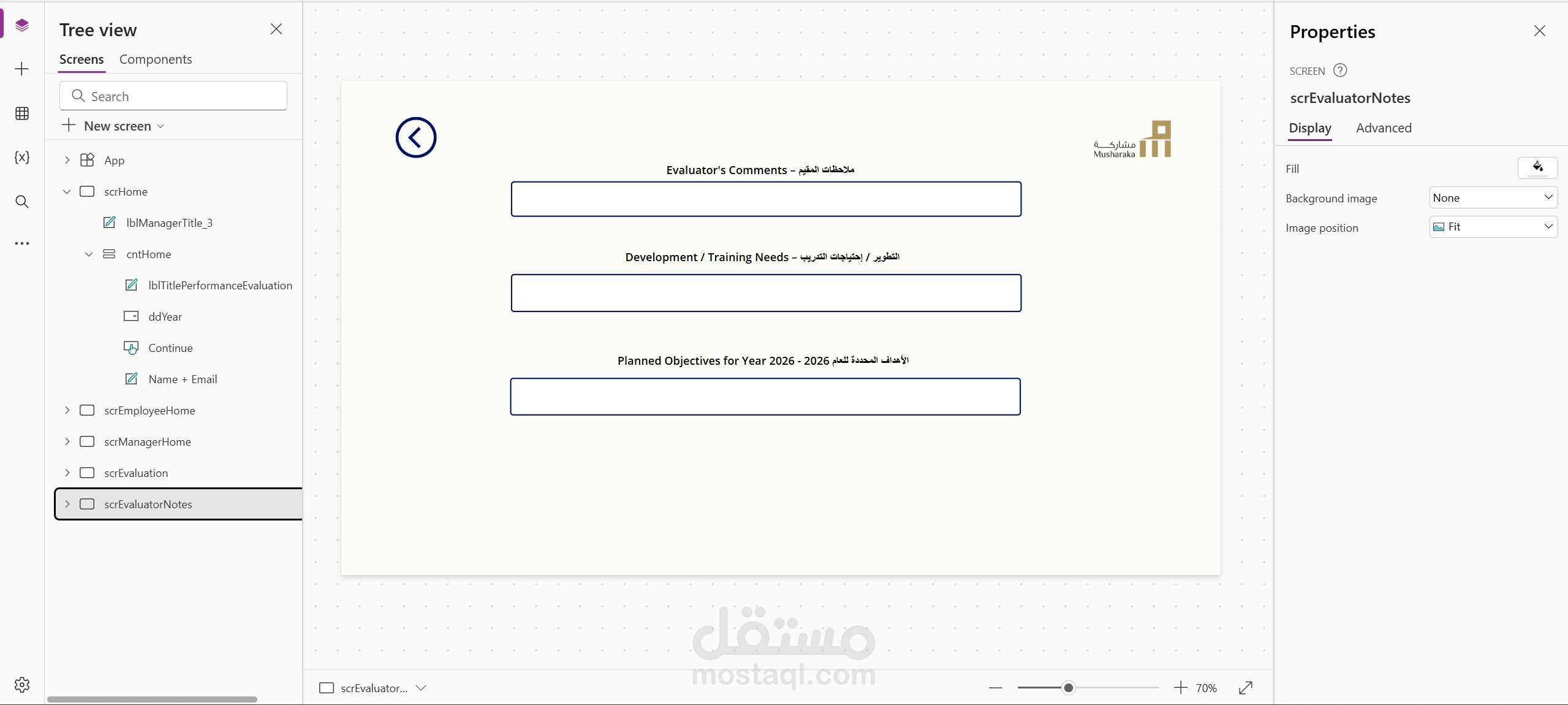 تم تحقيق ذلك من خلال ربط بيانات المستخدمين بهيكل إداري (Manager–Employee relationship) داخل SharePoint / Dataverse، واستخدام شروط داخل Power Apps لتصفية البيانات المعروضة.