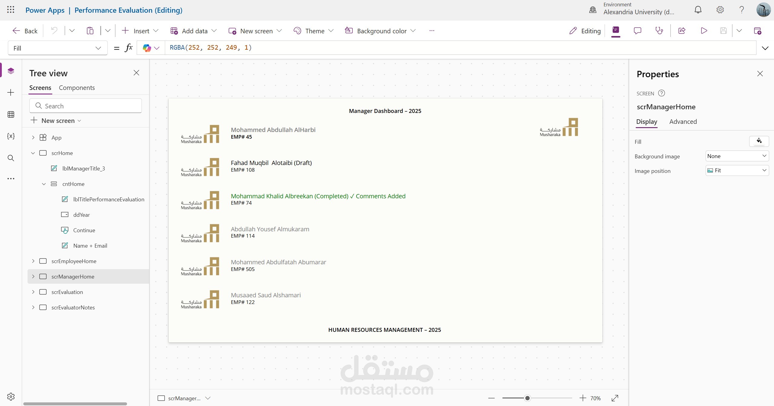 قمت بتصميم وتطوير نظام متكامل لإدارة وتقييم أداء الموظفين باستخدام Microsoft Power Platform، بهدف رقمنة عملية التقييم السنوي داخل إدارة الموارد البشرية وتحسين كفاءة المتابعة واتخاذ القرار.