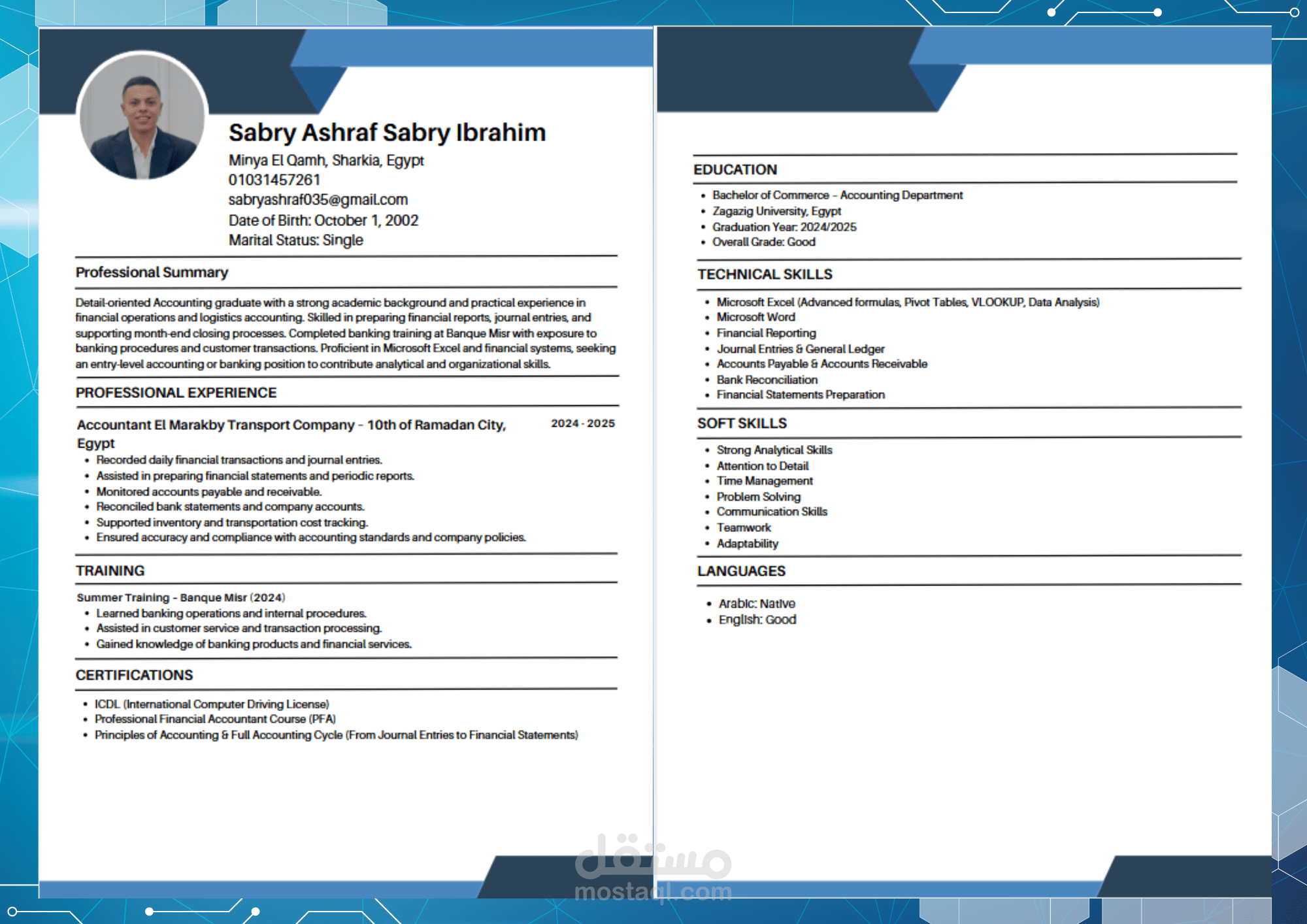 تصميم سيرة ذاتية باللغة الإنجليزية بأسلوب عصري وجذاب، يعكس خبراتك ومهاراتك بطريقة منظمة وسهلة القراءة. مثالي للباحثين عن وظائف دولية ويضمن ترك انطباع احترافي قوي لدى مسؤولي التوظيف.