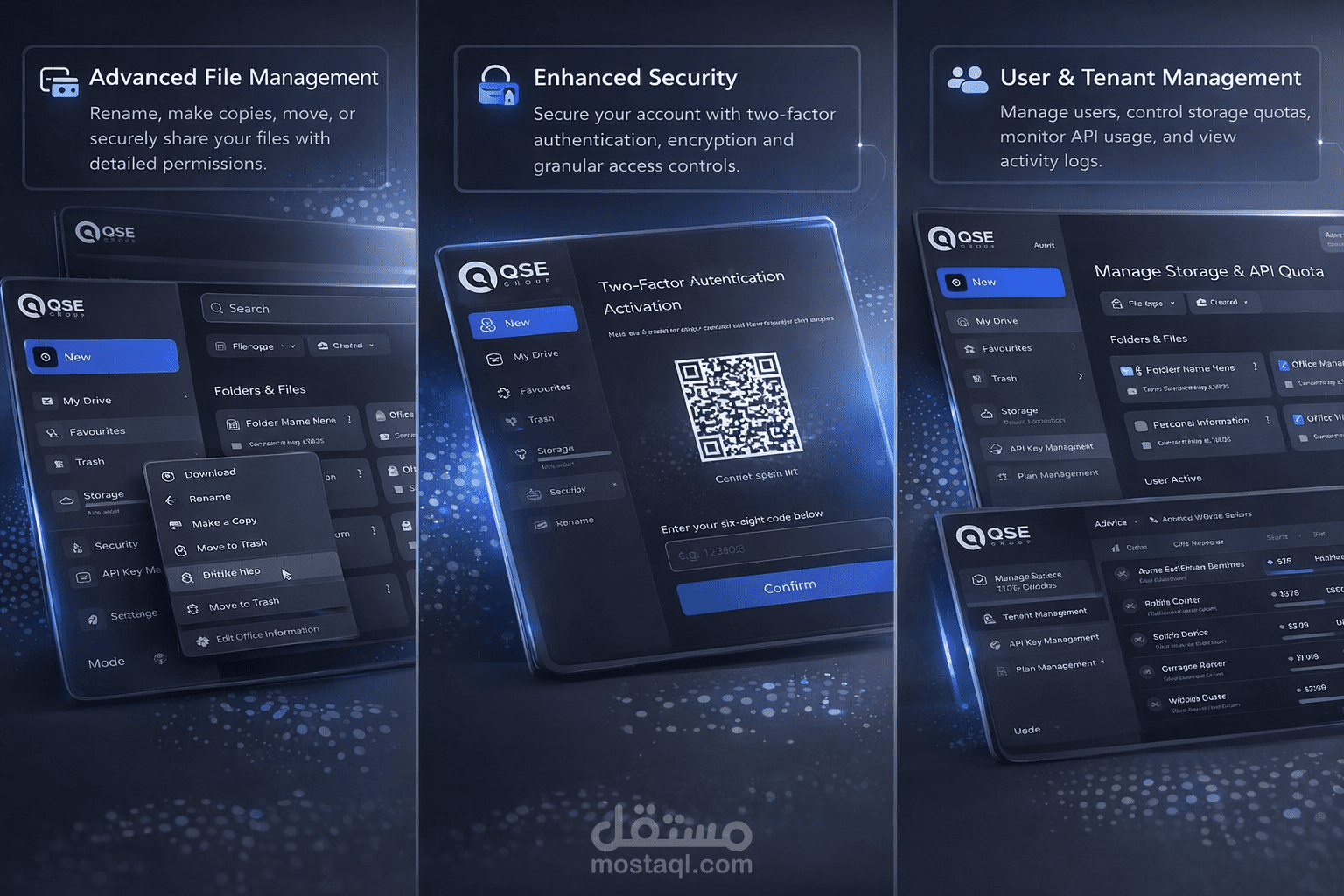 قمت ببناء تطبيق QSE Messenger للمراسلة الآمنة ومشاركة الملفات.