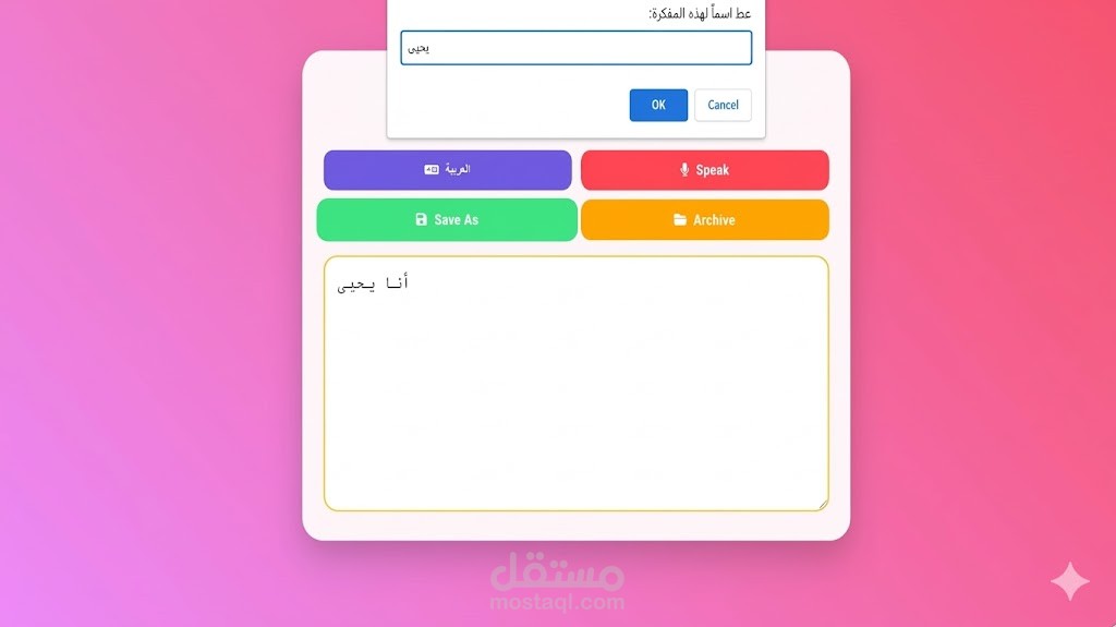 التقنيات: Web Speech API, Local Storage API.