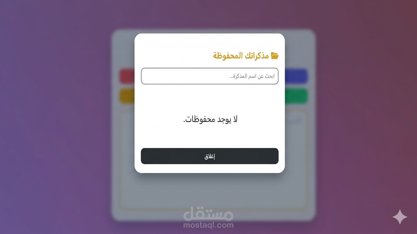 إدارة البيانات محلياً (Local Storage Management): نظام أرشفة كامل يعتمد على localStorage لحفظ واسترجاع وحذف الملاحظات فورياً دون الحاجة لقاعدة بيانات، مما يضمن سرعة الأداء وخصوصية البيانات.