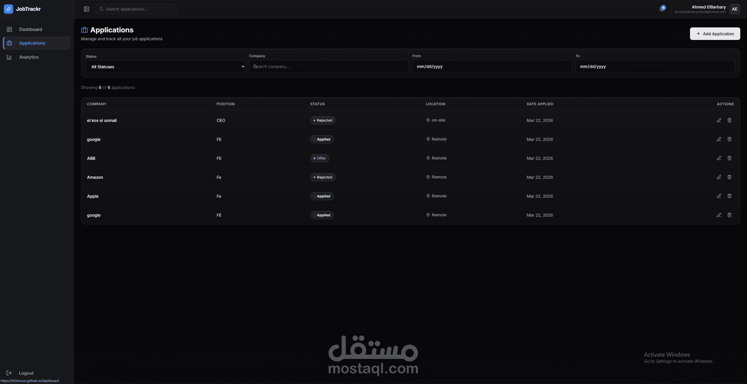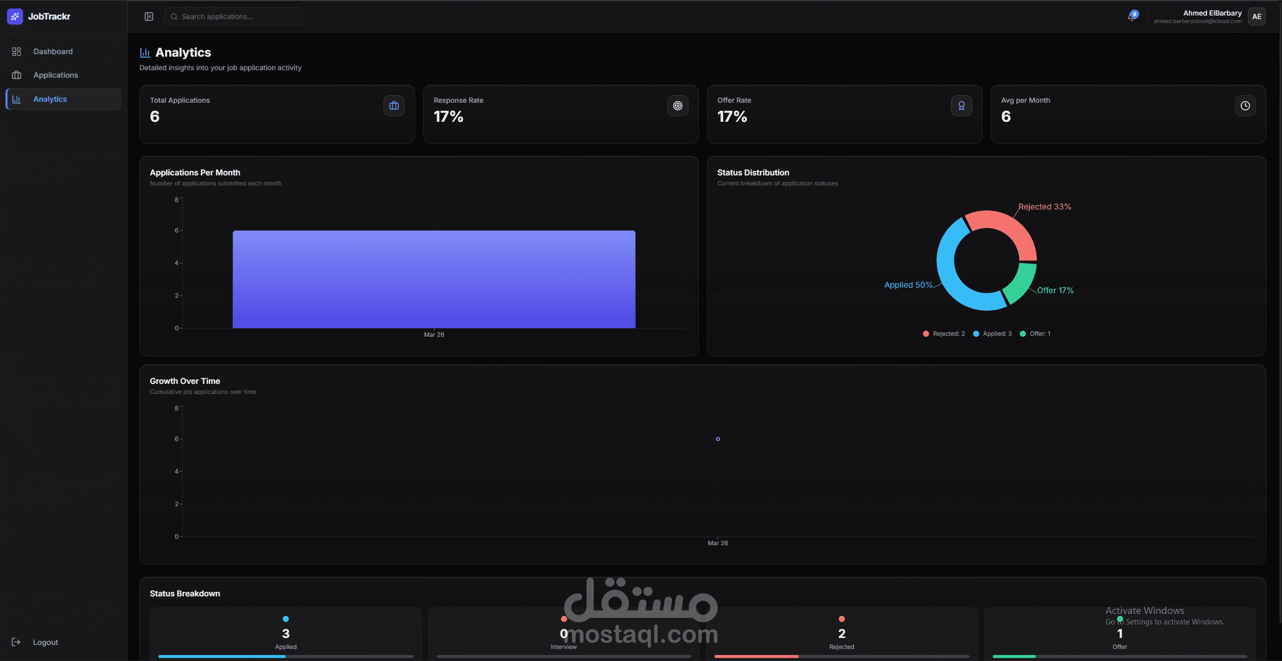 A modern React dashboard application for tracking job applications, visualizing analytics, and managing your job search efficiently.