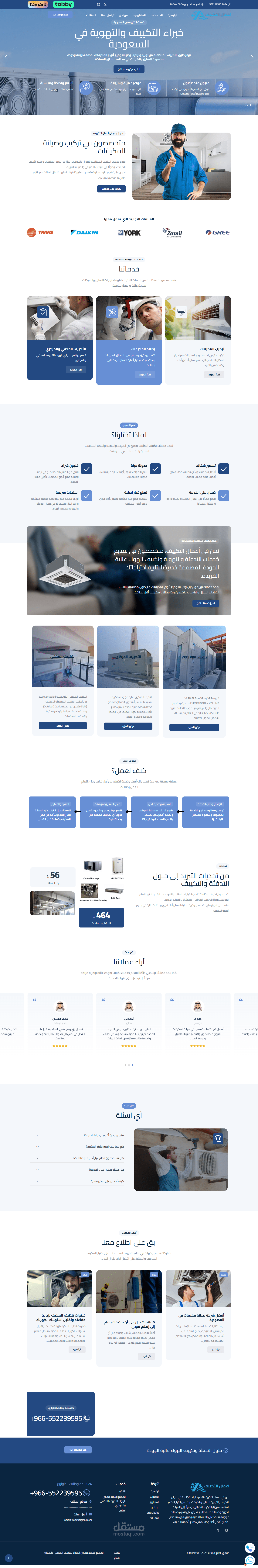 الموقع يعرض خدمات متكاملة تشمل توريد وتركيب وصيانة جميع أنواع المكيفات، بالإضافة إلى تصميم وتنفيذ أنظمة التكييف المركزي والمخفي للمنازل والشركات
