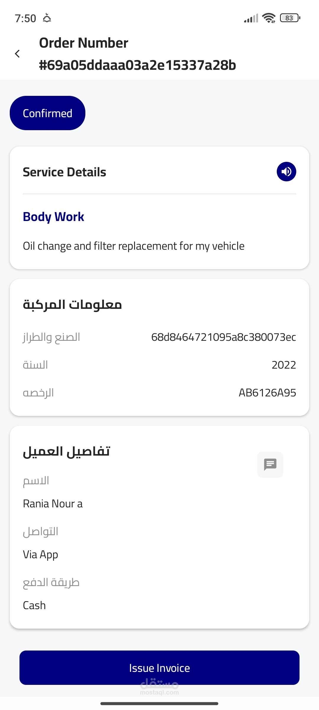 ? مركز الصيانة → عرض المنتجات، استقبال الطلبات، إصدار فواتير