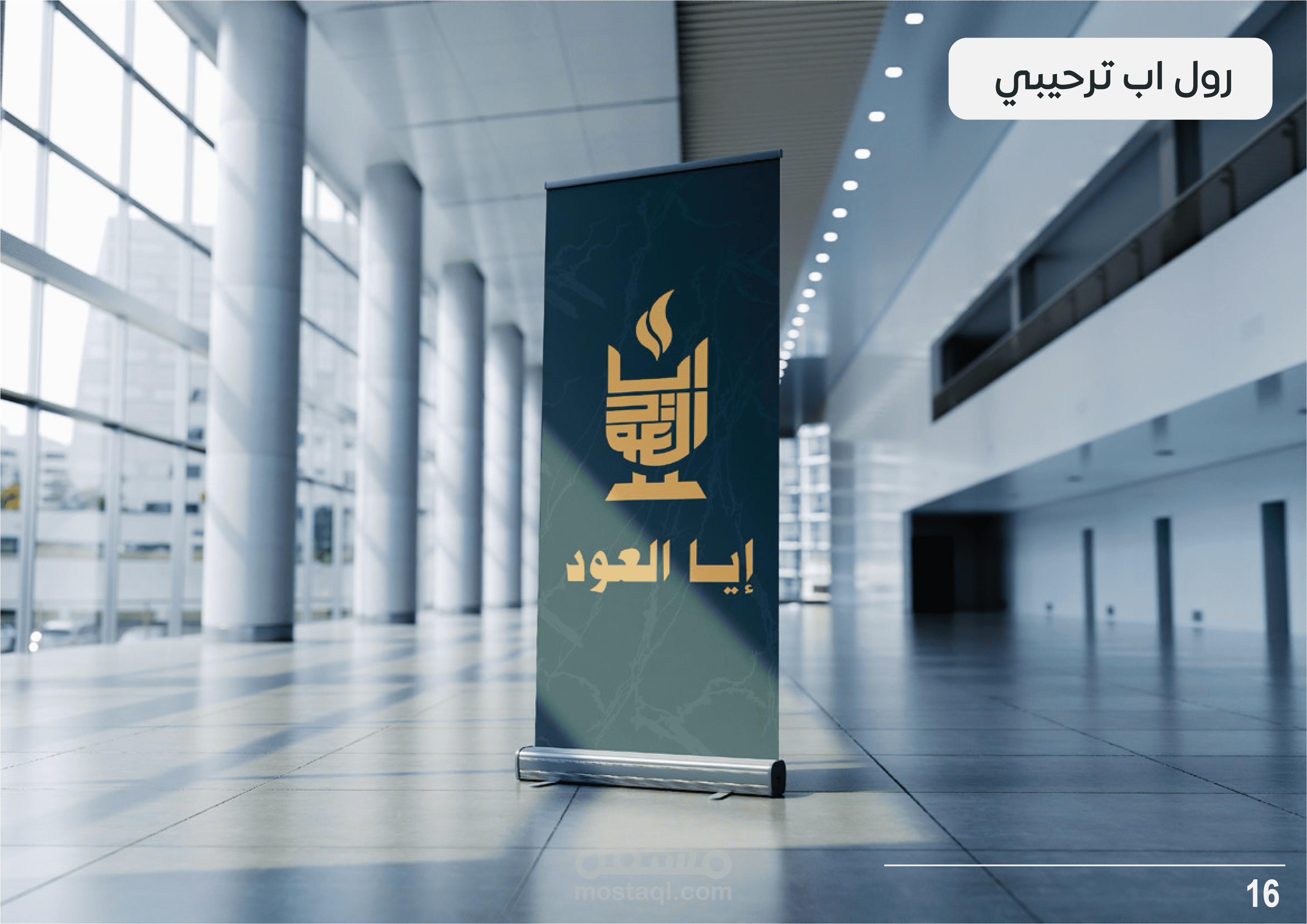 الجمالية الشاملة: يتميز تصميم ايا العود بجمالية متوازنة وأنيقة، تجمع بين البساطة والرقي. استخدام الألوان الداكنة في الخلفية مع تدرج الشعار الذهبي يخلق تباينًا جذابًا ويضفي لمسة من الغموض والجاذبية.