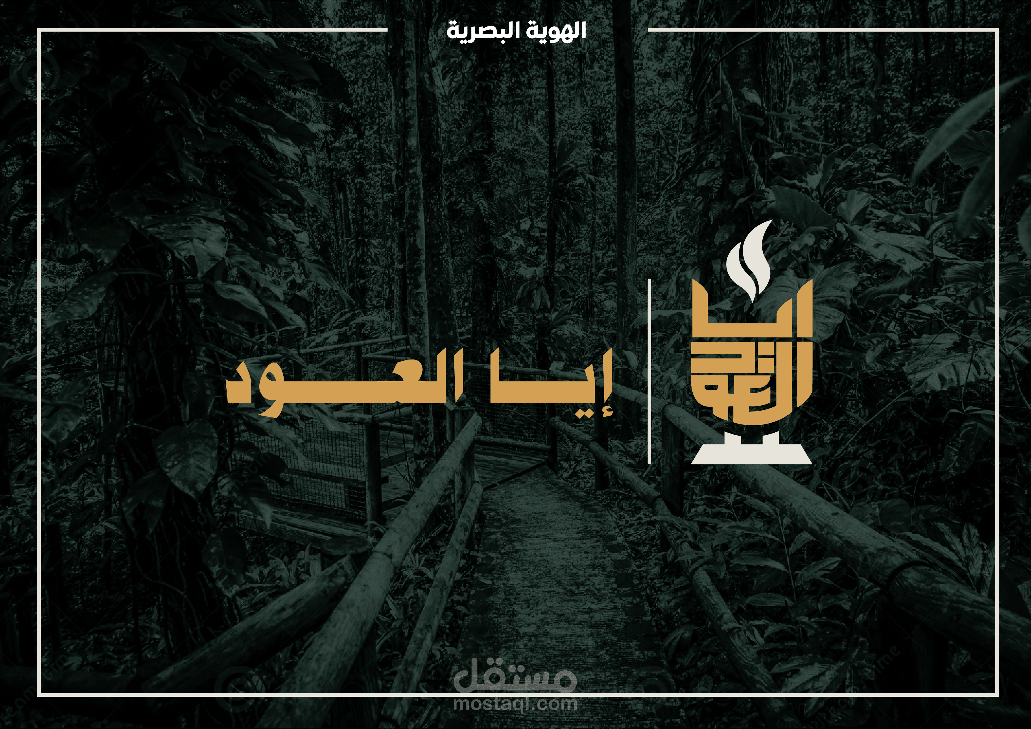 الشعار المركزي: يجسد شعار ايا العود الروح العربية الأصيلة، حيث يجمع بين الحرفين ا و ي بطريقة فنية ومبتكرة. تتميز الحروف بتدرج لوني ذهبي غني، يرمز إلى الجودة العالية والذوق الرفيع اللذين تمتاز بهما ايا العود.