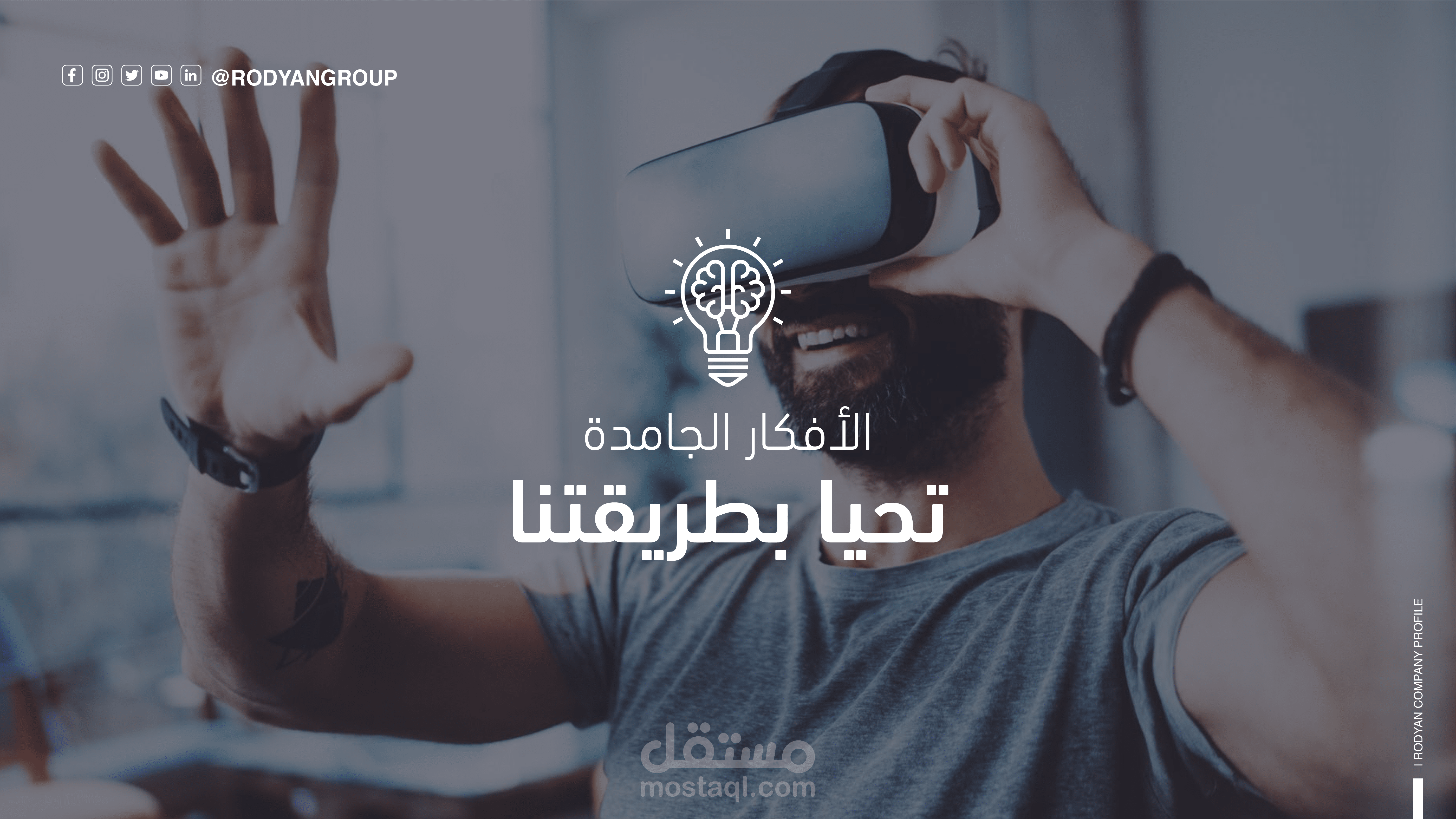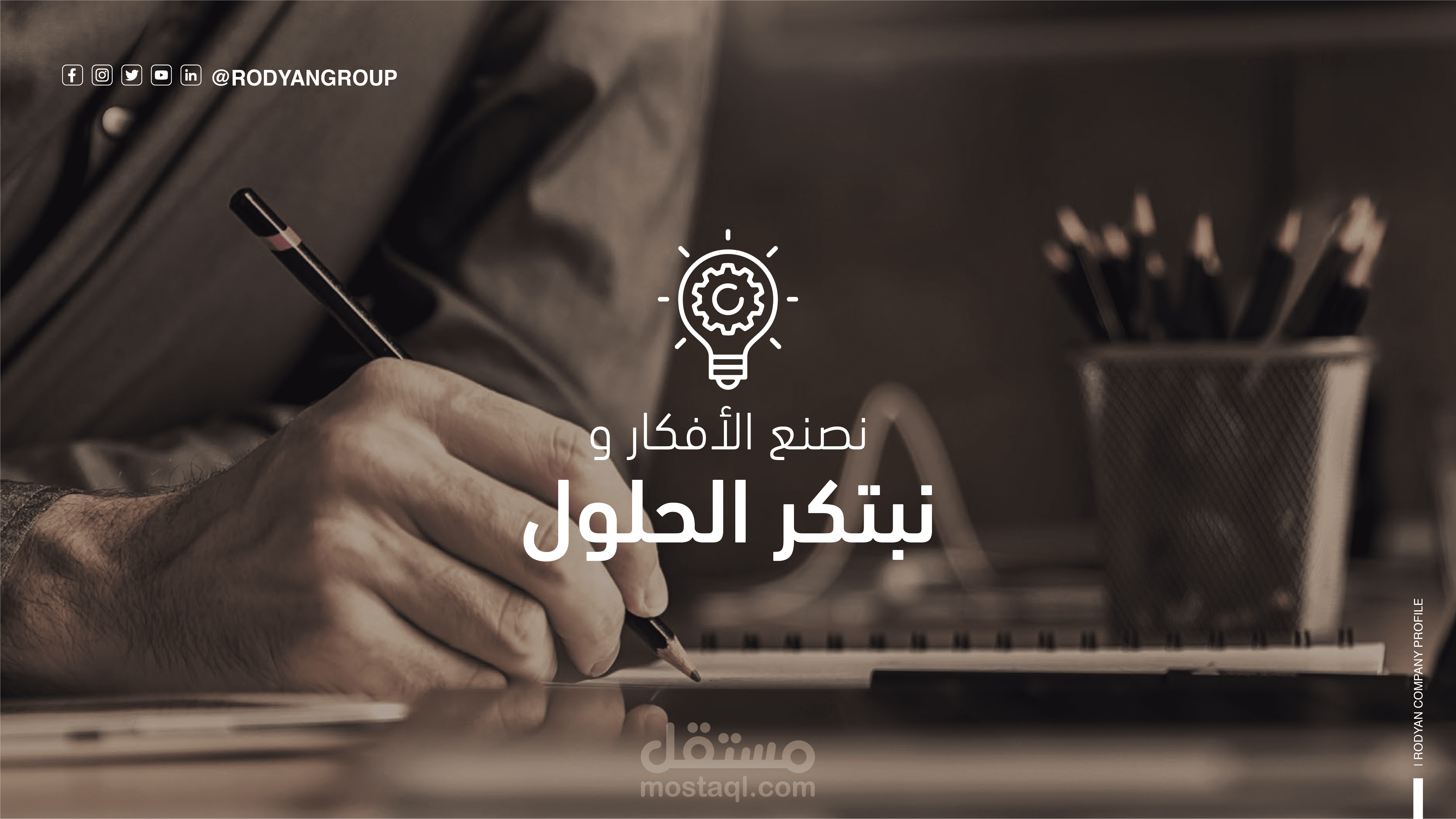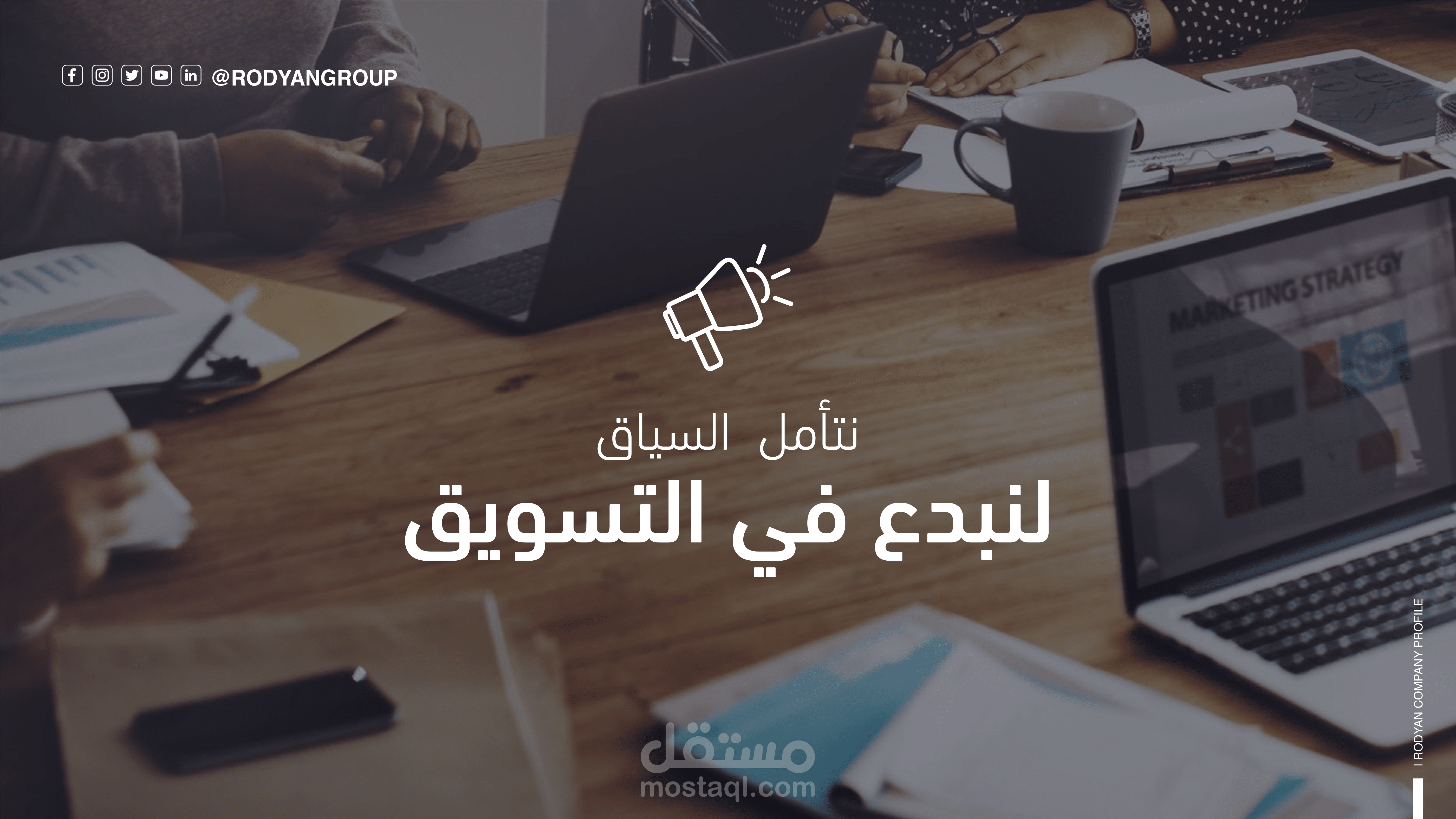 توزيع العناصر (Layout): يعتمد التصميم على التوازن البصري؛ حيث تم توزيع قنوات التواصل الاجتماعي، الشعار، ومعلومات الاتصال بشكل يضمن سهولة القراءة (Readability) دون تشتيت المستخدم.