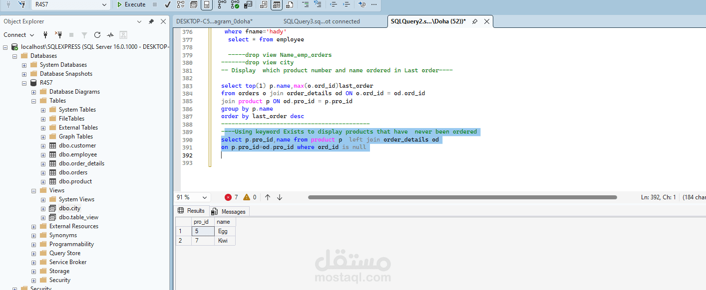 تم أيضًا تنفيذ مجموعة من الاستعلامات (SQL Queries) لتحليل البيانات واستخراج رؤى مهمة، مثل: