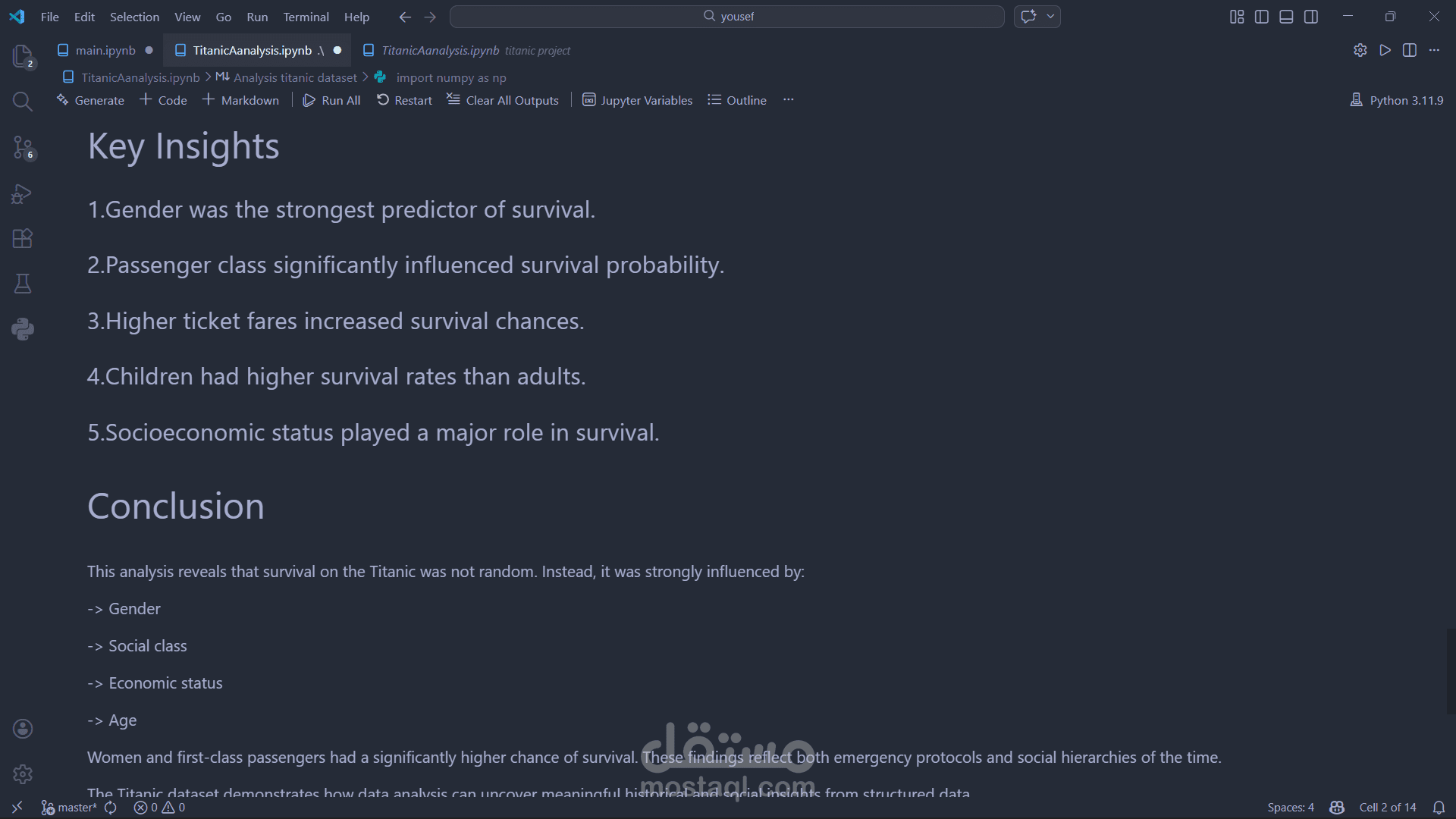ساهم هذا التحليل في فهم العوامل الأساسية التي أثرت على نجاة الركاب، مما يوضح أهمية تحليل البيانات في استخراج insights تدعم اتخاذ القرار.