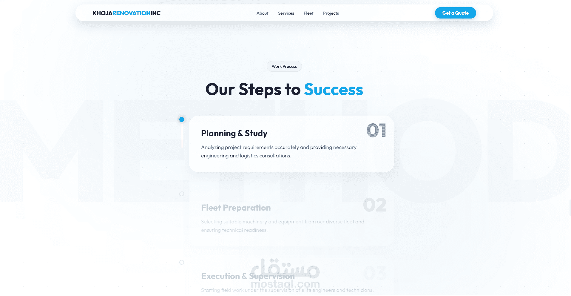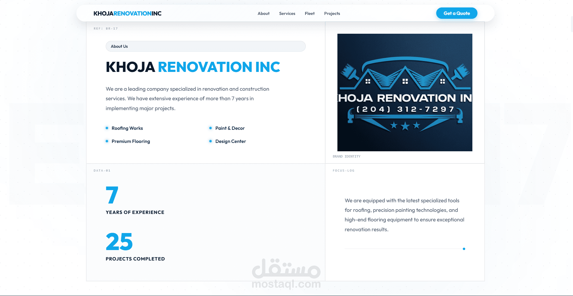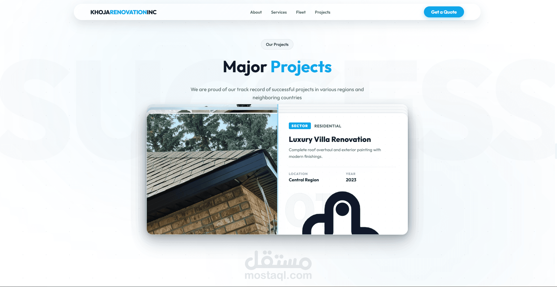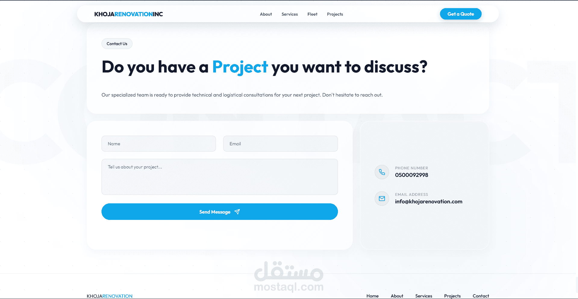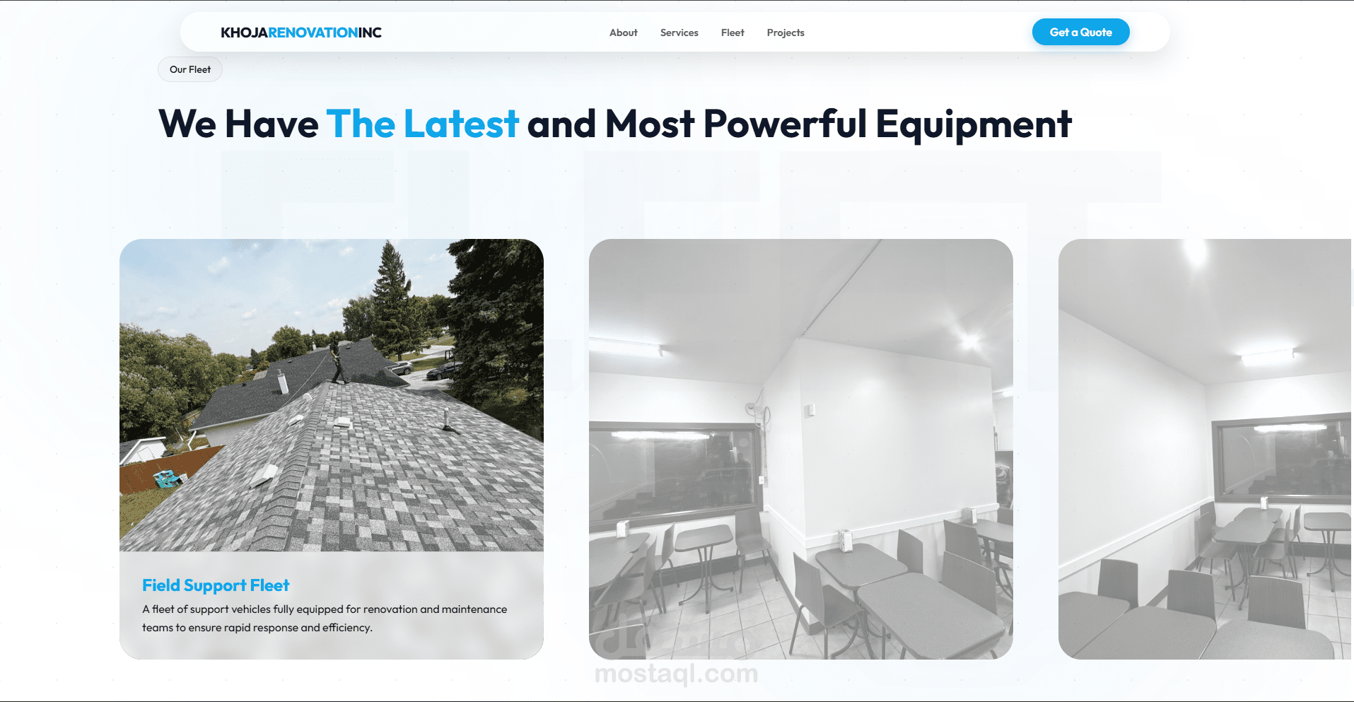 موقع KHOJA Renovation Inc هو منصة رقمية احترافية تُبرز هوية شركة متخصصة في أعمال التجديد والبناء الفاخر، مع تركيز واضح على تقديم حلول عصرية للمساحات السكنية والتجارية. يعكس الموقع مستوى عالي من الجودة والدقة في التصميم والتنفيذ، ويهدف إلى جذب العملاء الباحثين عن خدمات Renovation متكاملة بأسلوب حديث.