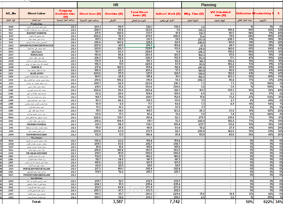Planning section - Monthly Production Report