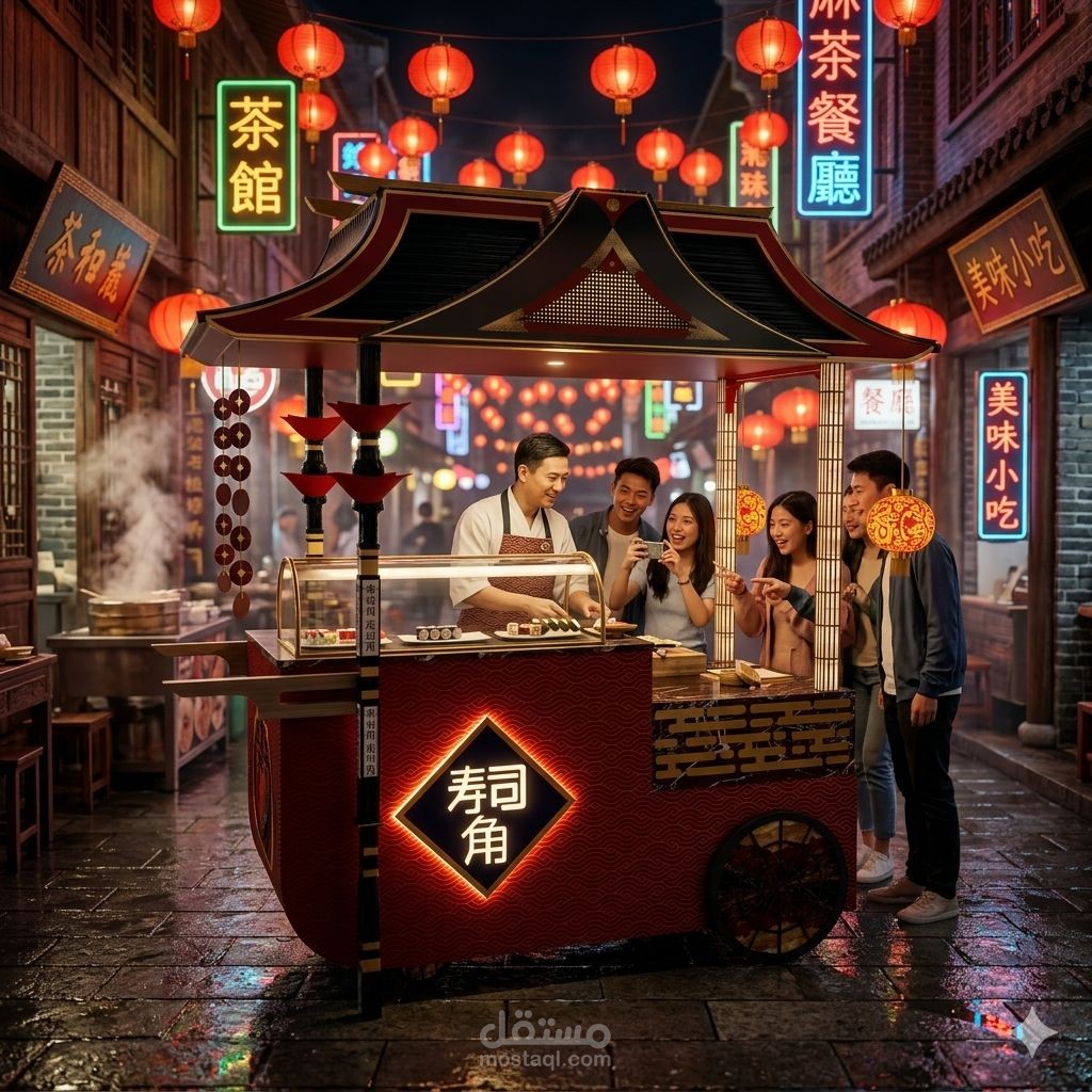 Hanging Elements: Metal elements and a red lantern are classic "talisman" elements used to attract good fortune and customers.