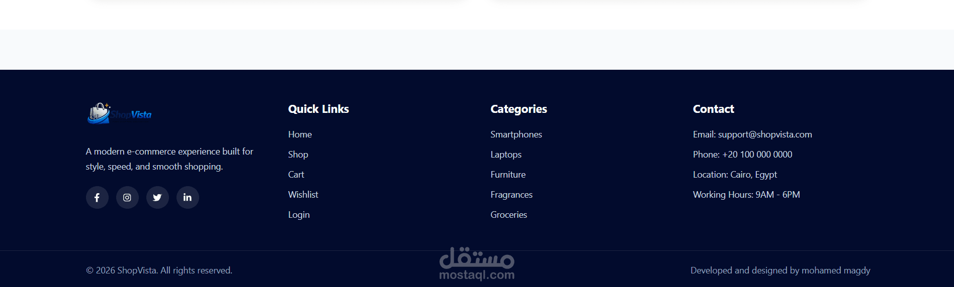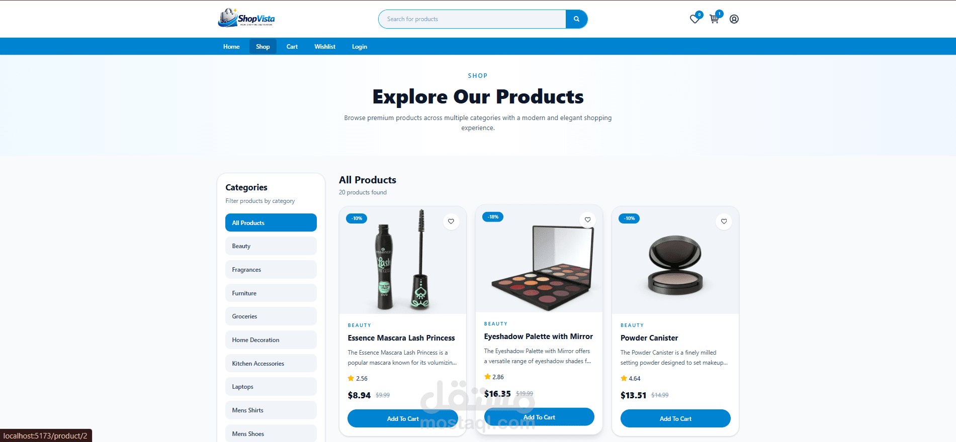 تم تصميم وبناء مكونات قابلة لإعادة الاستخدام باستخدام React، مع تطبيق نظام توجيه ديناميكي (Dynamic Routing) وإنشاء صفحات منتجات تفاعلية.