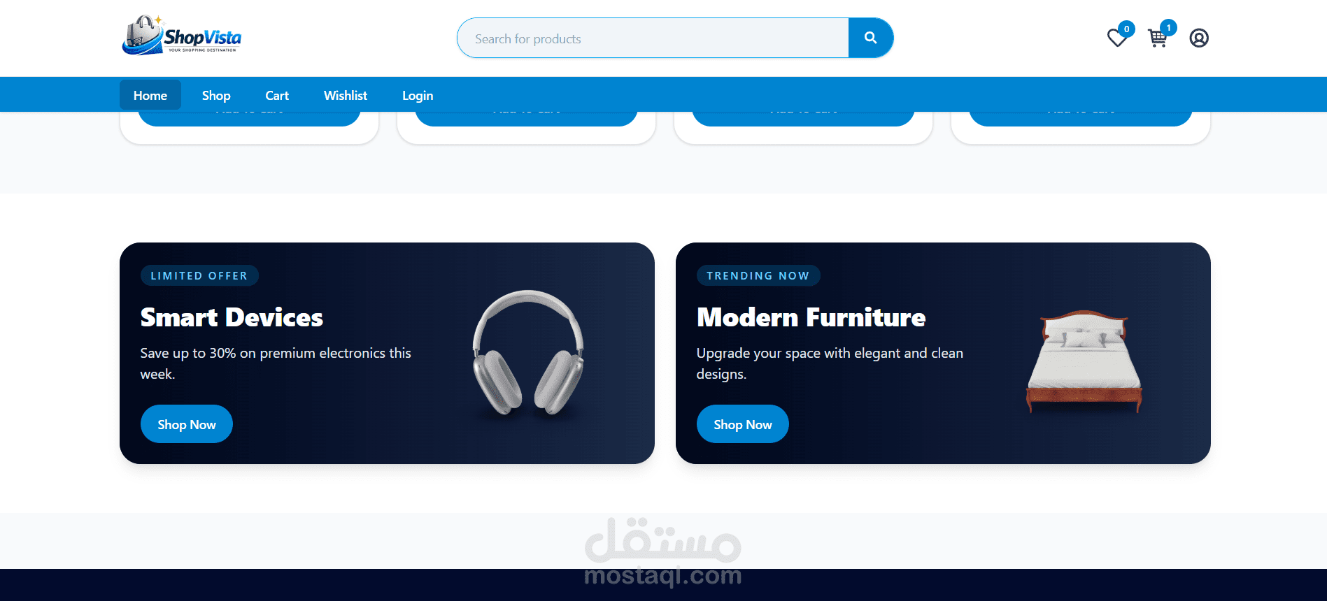 تم تطوير تطبيق تجارة إلكترونية متجاوب للتسوق عبر الإنترنت، يتميز بواجهة مستخدم حديثة وتجربة استخدام سلسة.