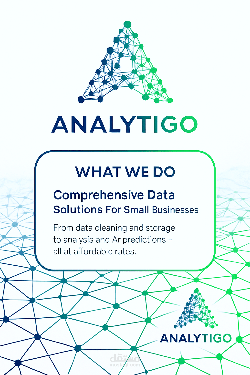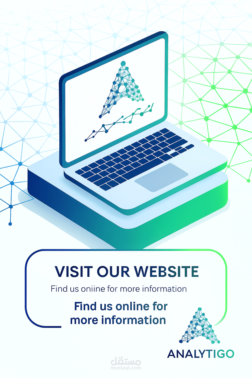 قمت بتصميم الهوية البصرية الكاملة لشركة ANALYTIGO، وهي شركة متخصصة في خدمات تحليل البيانات.