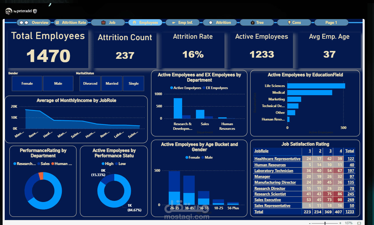 satisfaction, Marital Status, and Distance from home, to highlight a few. I