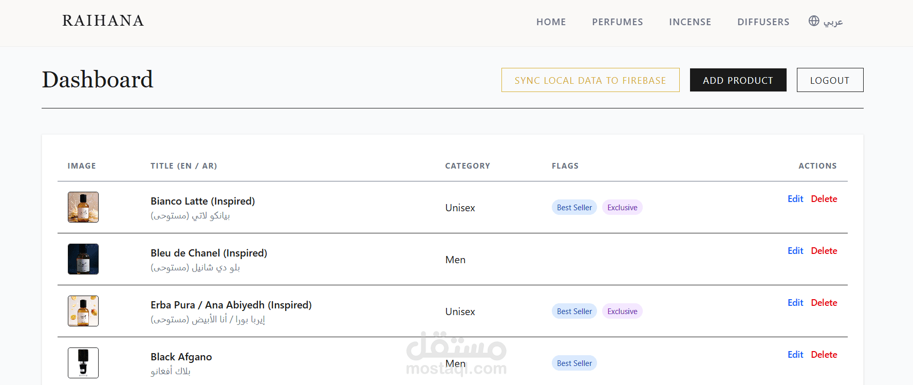A major part of the system is the integration with Firebase Firestore, enabling real-time data synchronization. I also built a custom admin dashboard that allows full control over products (add, edit, delete, categorize) without requiring code changes.