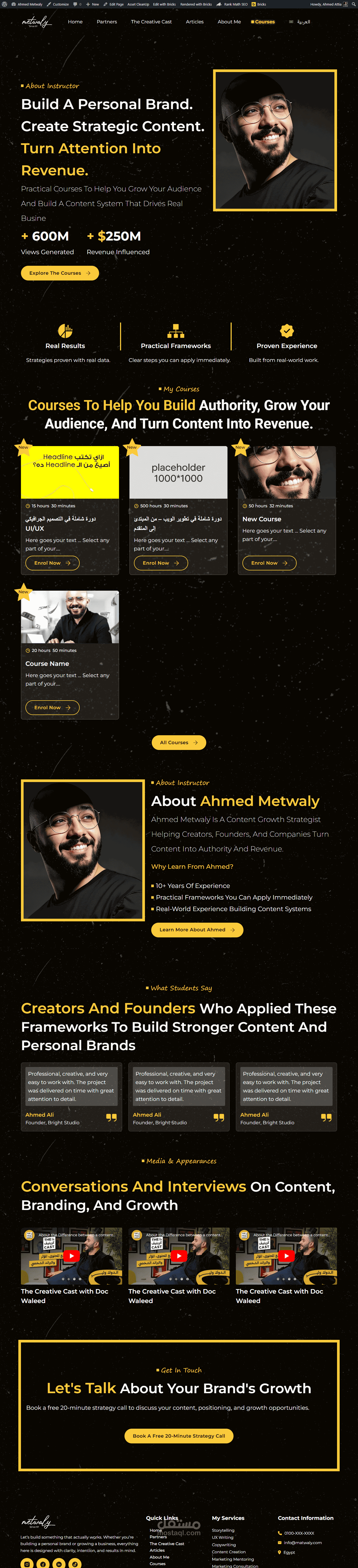 CTA button: "استكشف الكورسات"