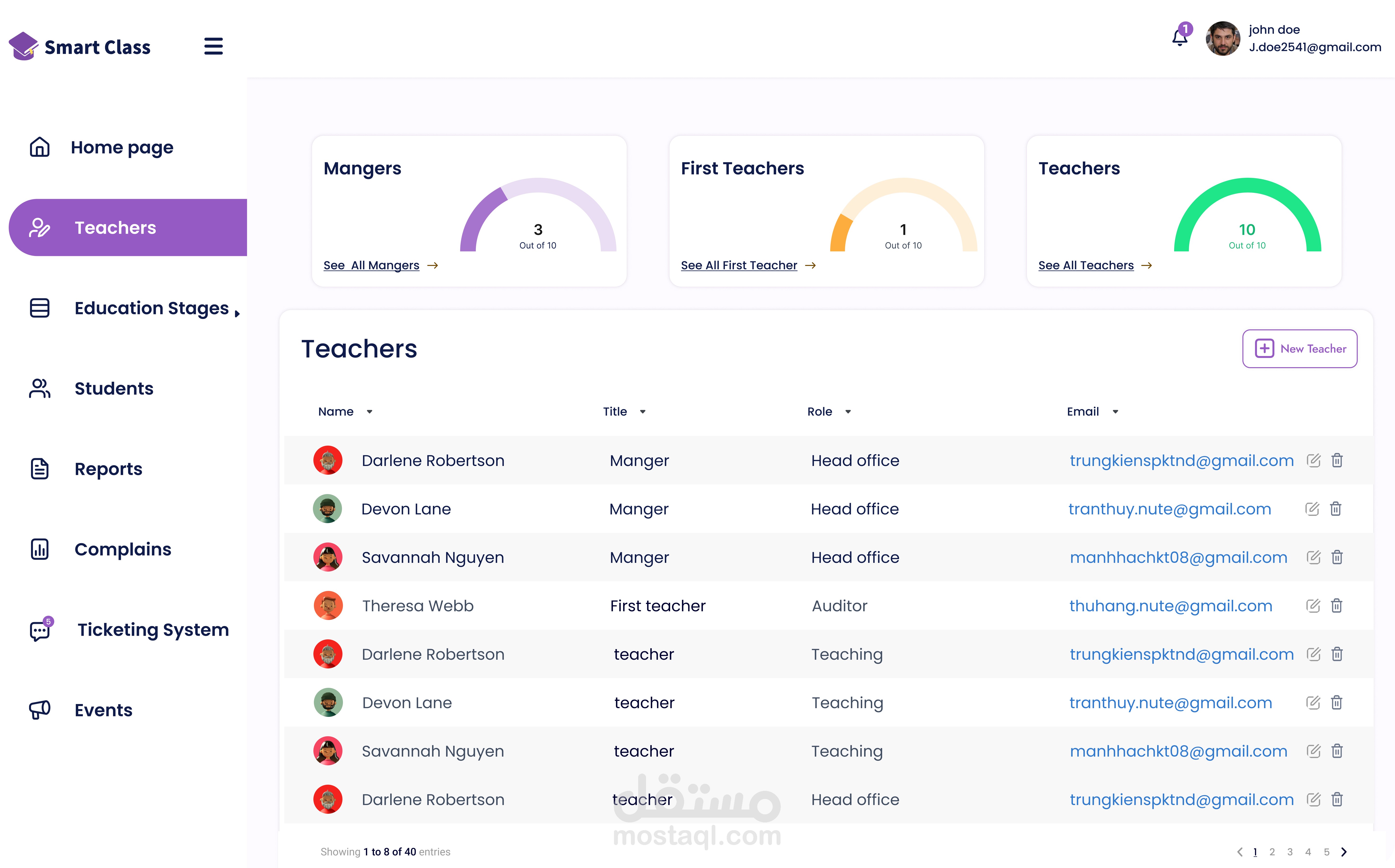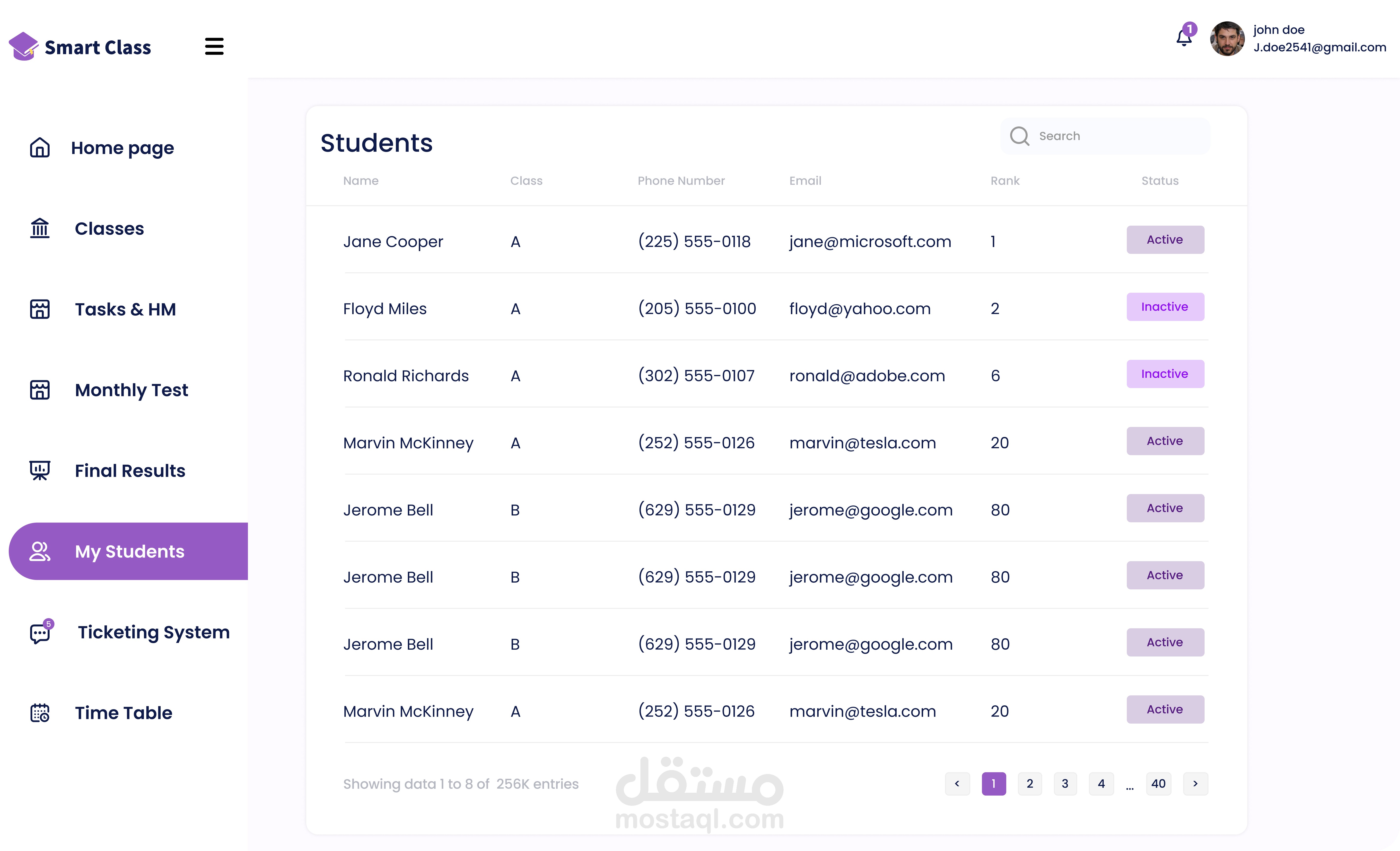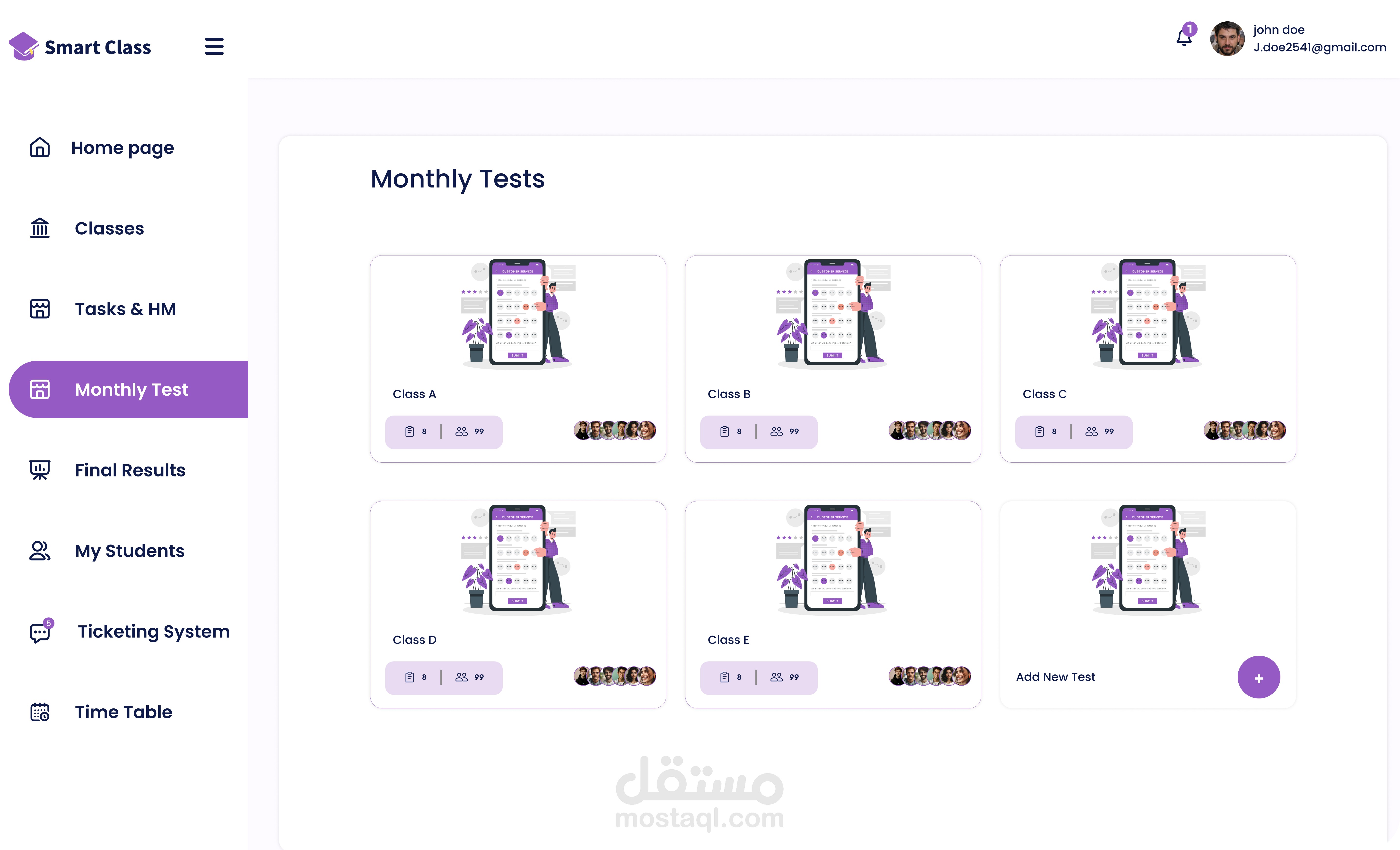قمت بتصميم نظام SaaS تعليمي (Smart Class) يهدف إلى تحسين إدارة العملية التعليمية داخل المدارس من خلال تجربة مستخدم سهلة ومنظمة.