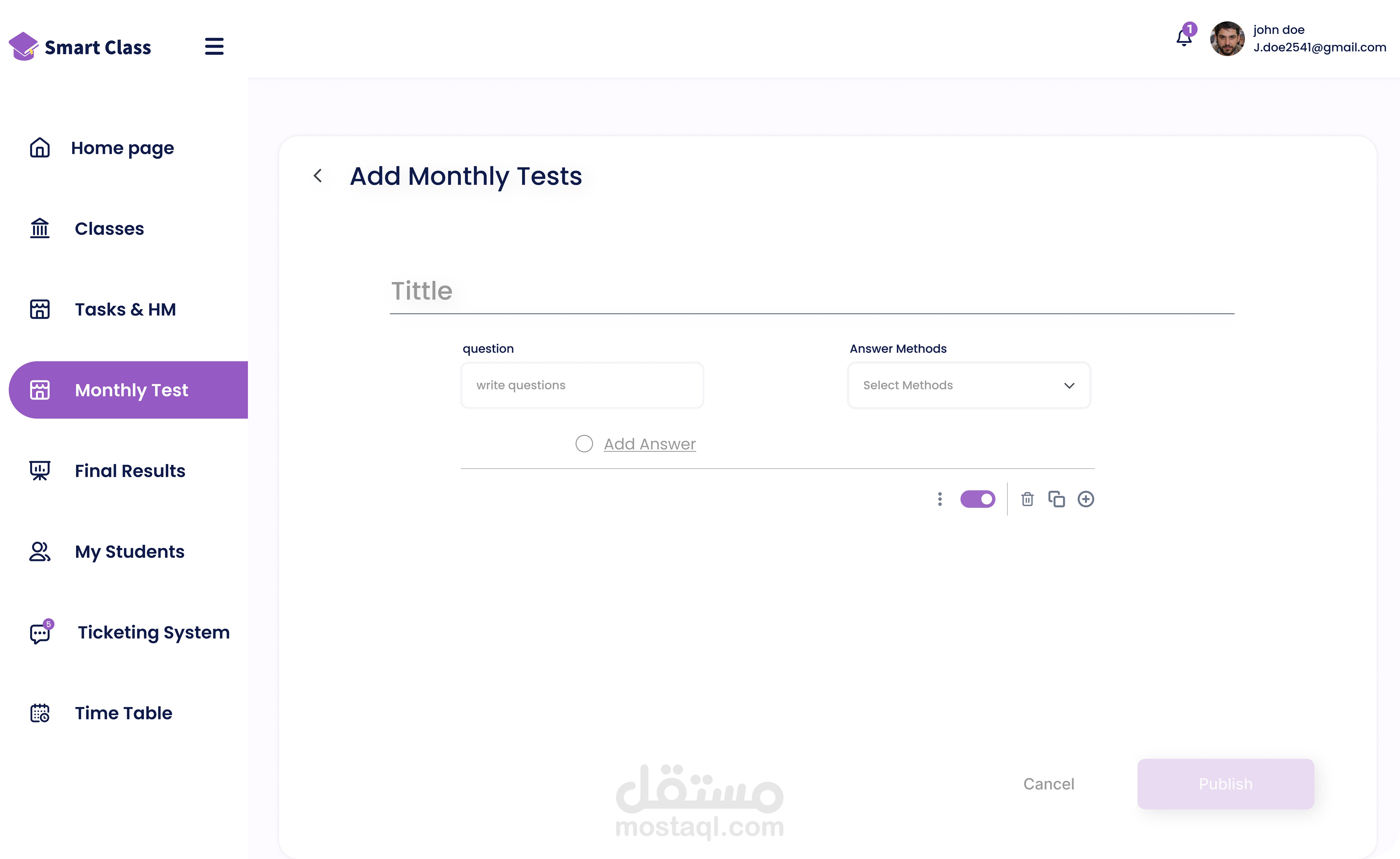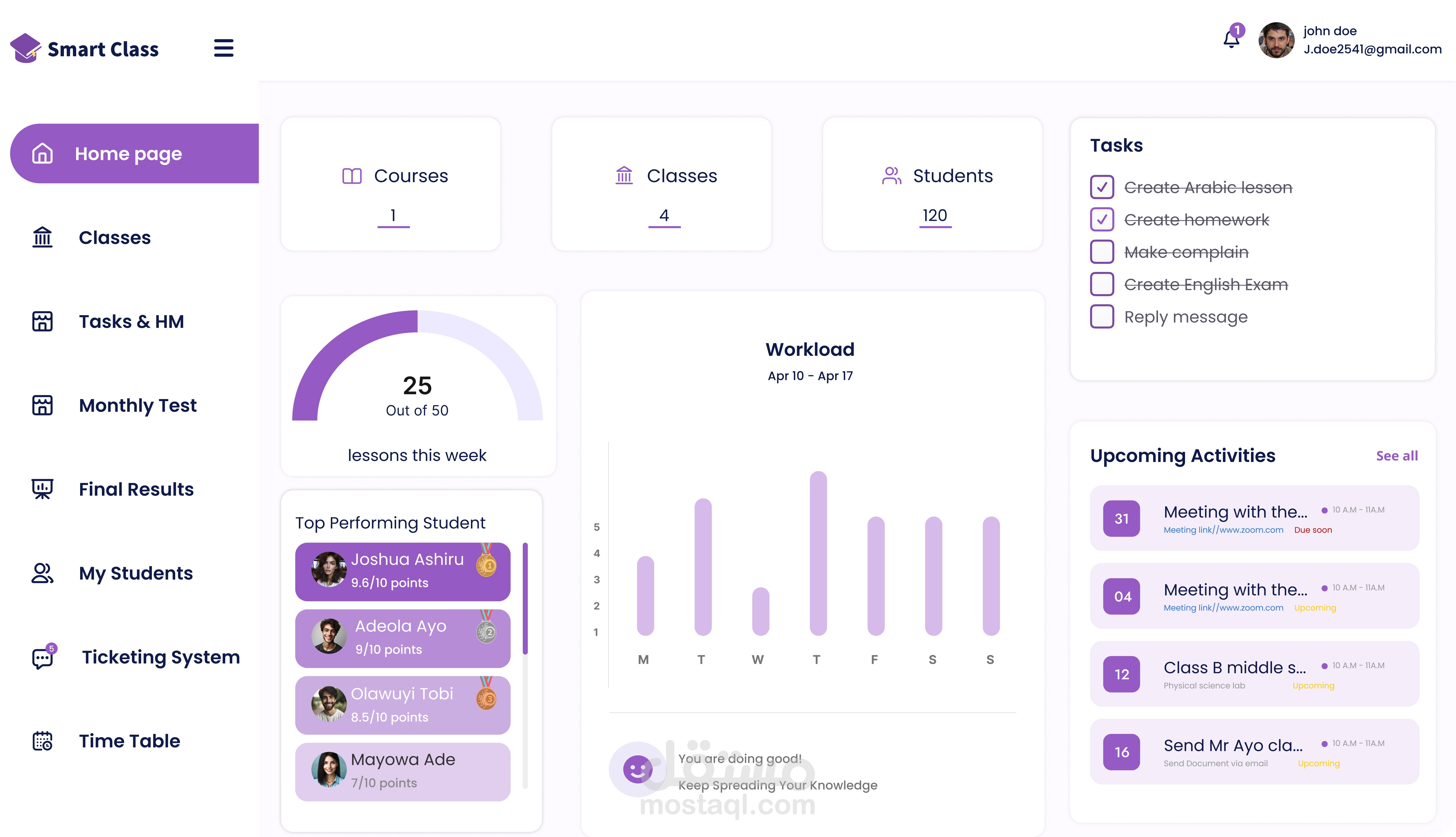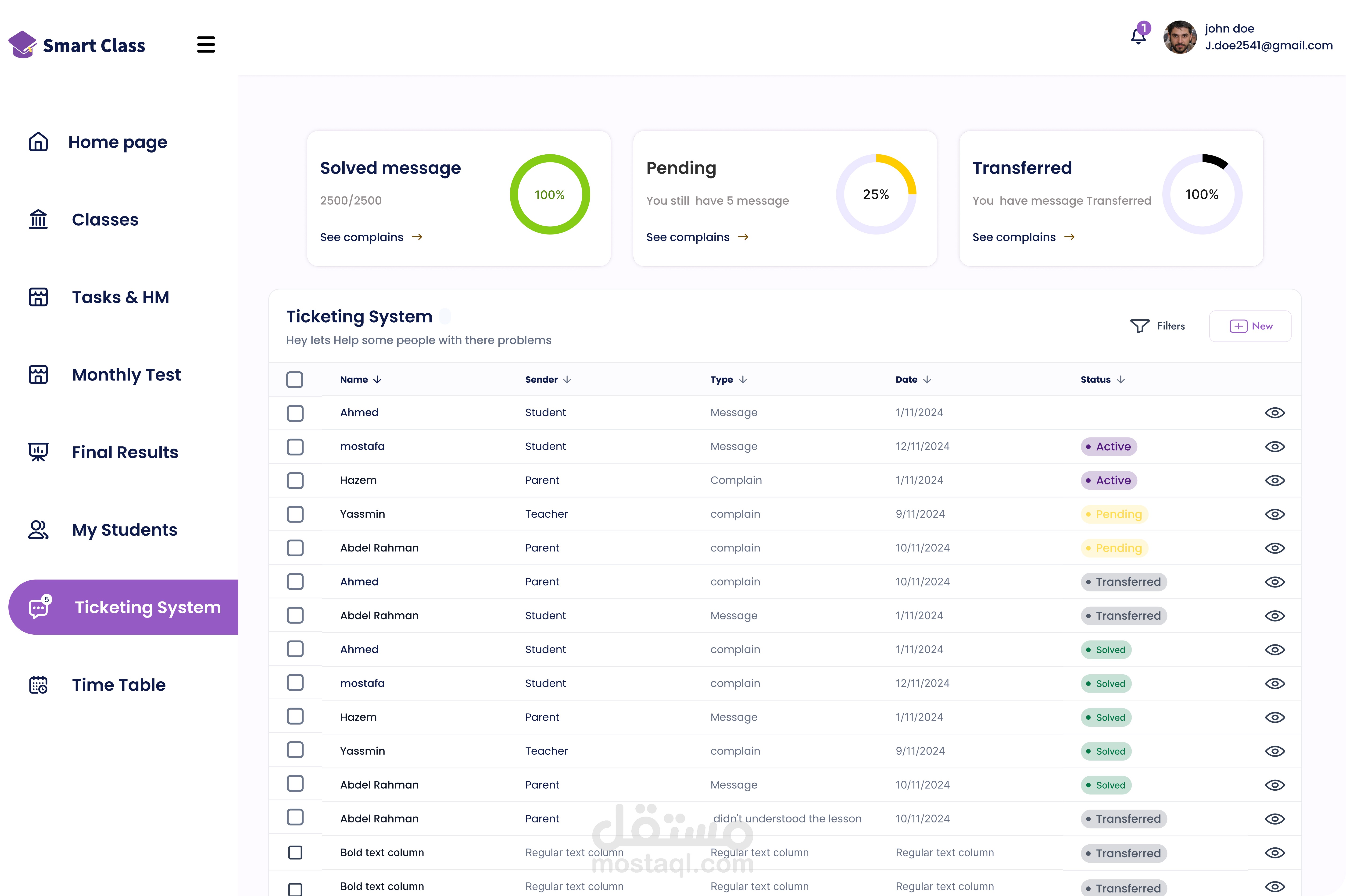 قمت بتصميم نظام SaaS تعليمي (Smart Class) يهدف إلى تحسين إدارة العملية التعليمية داخل المدارس من خلال تجربة مستخدم سهلة ومنظمة.