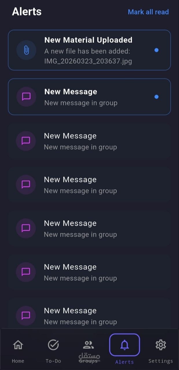دردشة جماعية لحظية (Real-time Group Chat): محرك دردشة متطور داخل كل مجموعة يتيح للطلاب النقاش الفوري وتبادل الأفكار باستخدام تقنيات Supabase Realtime.
