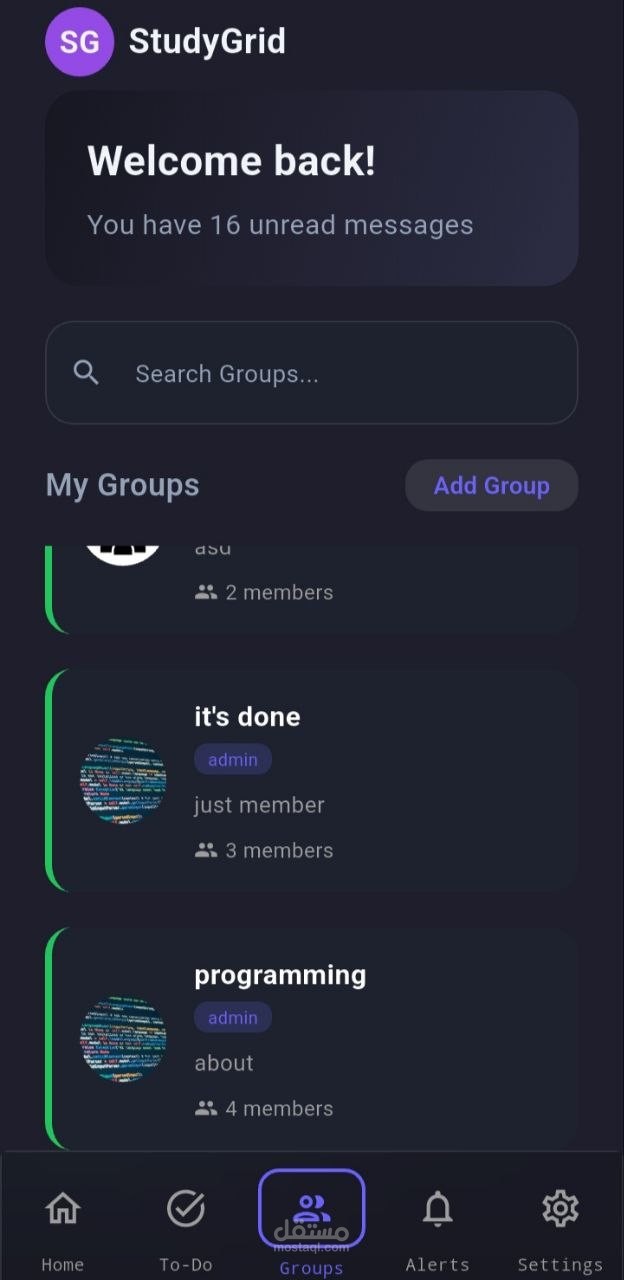 يعكس StudyGrid قدرة المطور على بناء تطبيقات الـ Full-stack التي تعتمد على تحديثات البيانات اللحظية (Real-time updates) وإدارة الملفات الضخمة سحابياً، مع تقديم واجهة مستخدم (UI) بسيطة وفعالة تخدم الأغراض التعليمية.