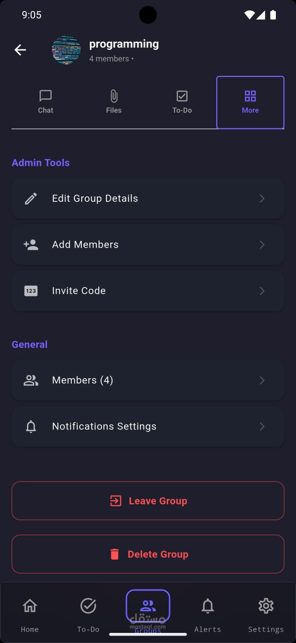 نظام توثيق آمن (Secure Auth): تسجيل دخول آمن وإدارة متكاملة لحسابات المستخدمين وصلاحيات الوصول للمجموعات.