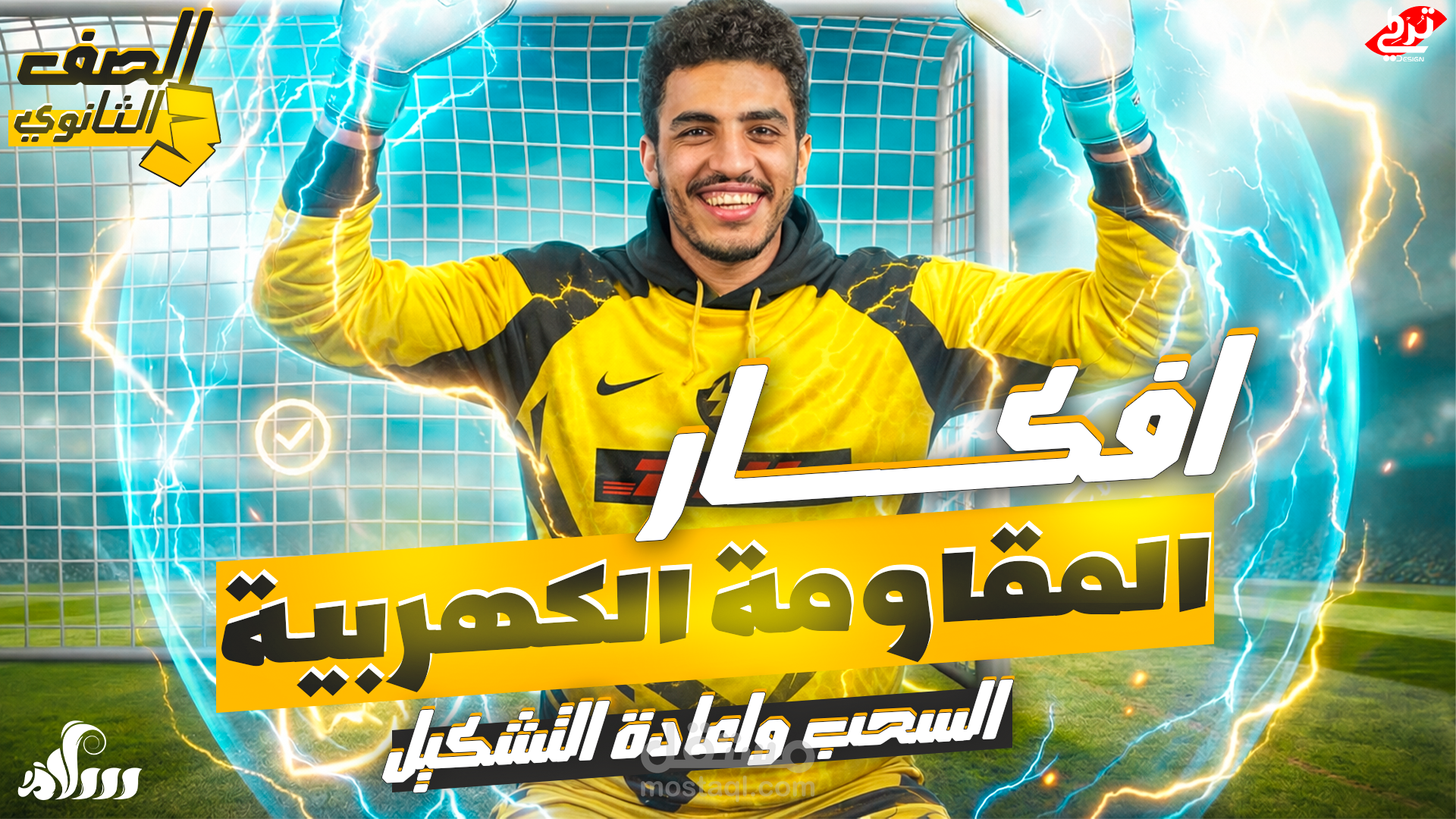 • الشخصية المحورية: صورة لمدرس فيزياء مبتسم وواثق، مرتدياً زياً مخصصاً (كسترة حارس مرمى صفراء وسوداء) تحمل شعار "كهربائي" ليربطه بموضوع الفيزياء. هو يرفع يديه كحارس مرمى، جاهزاً "للتصدي" لأي سؤال أو مفهوم صعب.