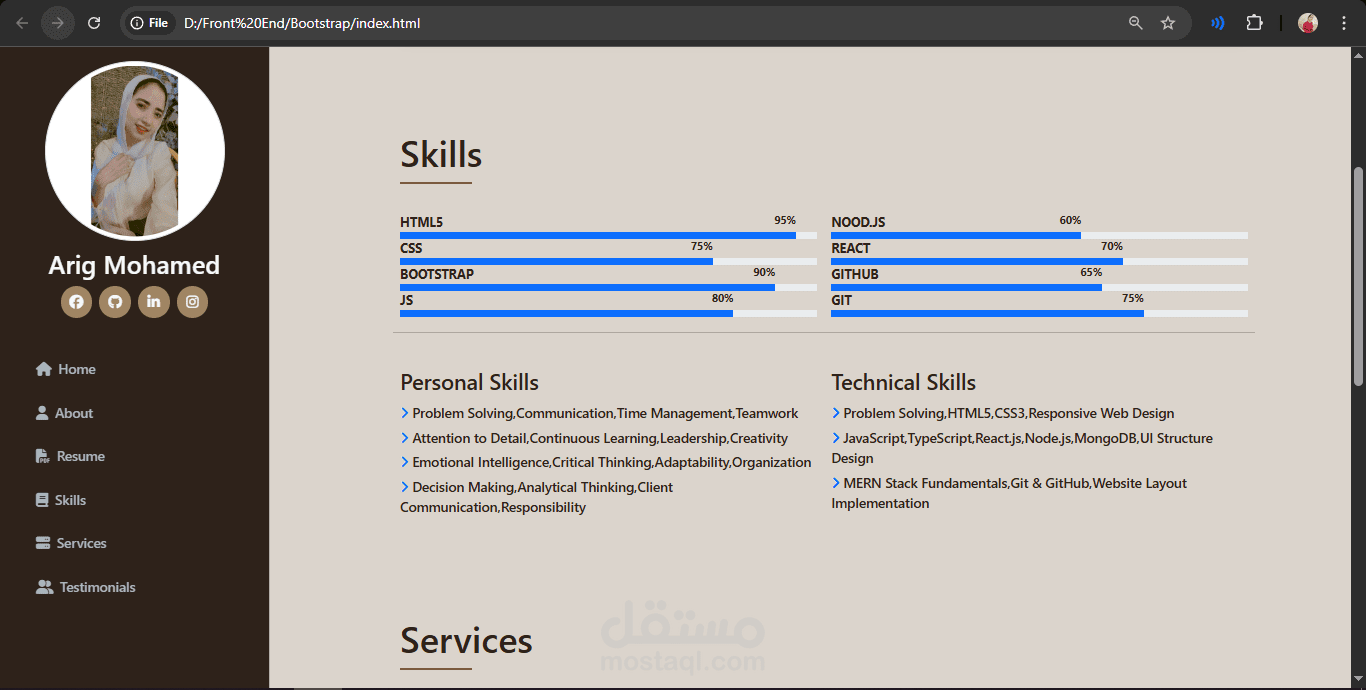 تصميم وبرمجة موقع "برتفوليو" متكامل ومتجاوب (Responsive Portfolio).