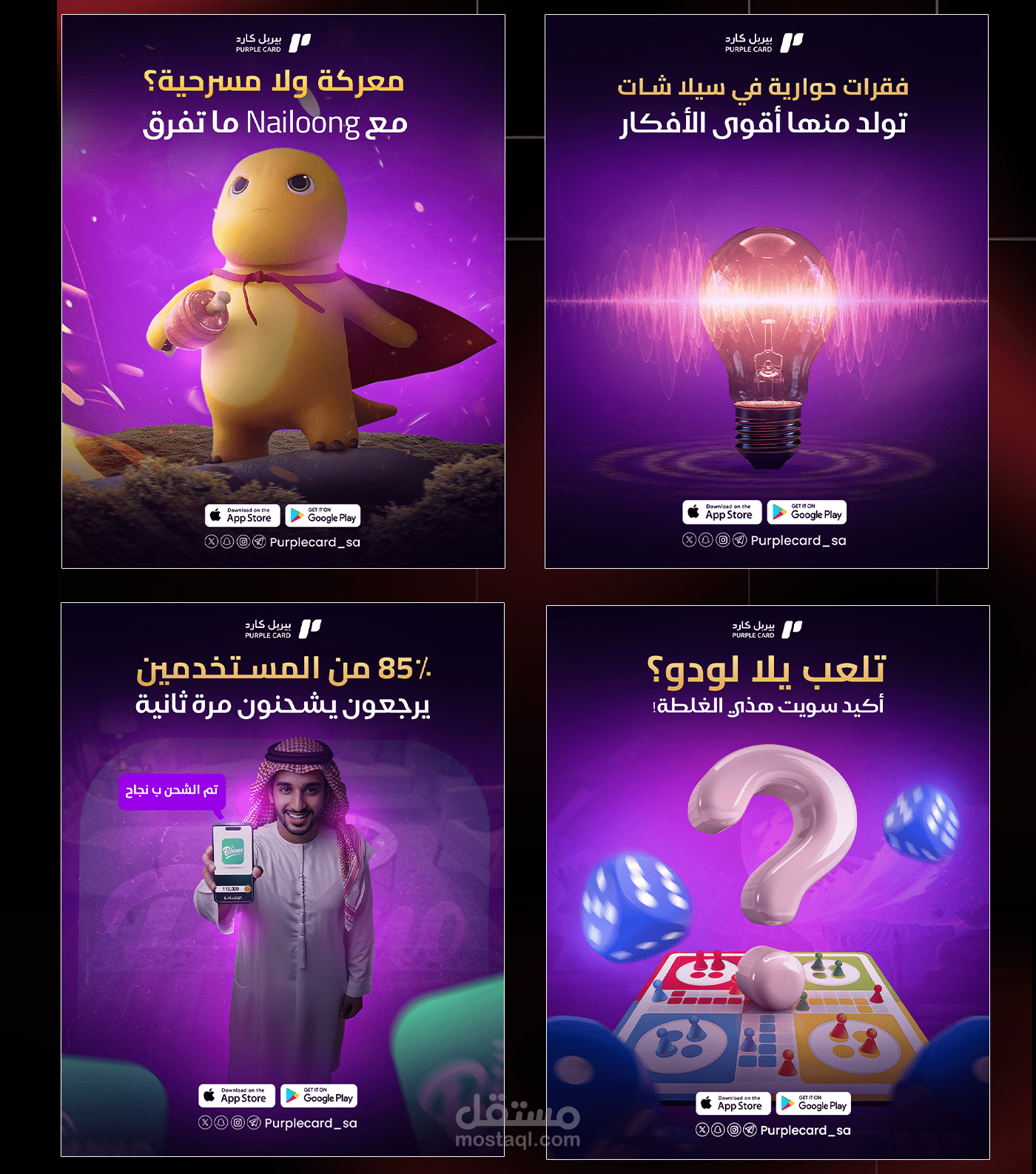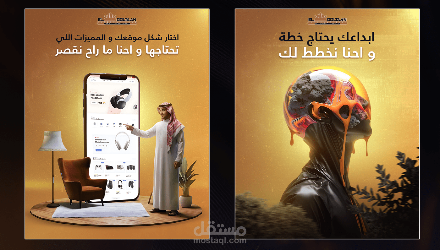 تشمل هذه الأعمال مشاريع لقطاعات متعددة، من بينها مجال الألعاب، حيث تم التركيز على تقديم تصاميم جذابة وديناميكية تعكس روح المنافسة والتشويق. كما تضمنت مشاريع في مجال بيع الأدوات الكهربائية المنزلية، والتي اعتمدت على إبراز جودة المنتجات وبناء هوية بصرية قوية تعزز ثقة العملاء.
