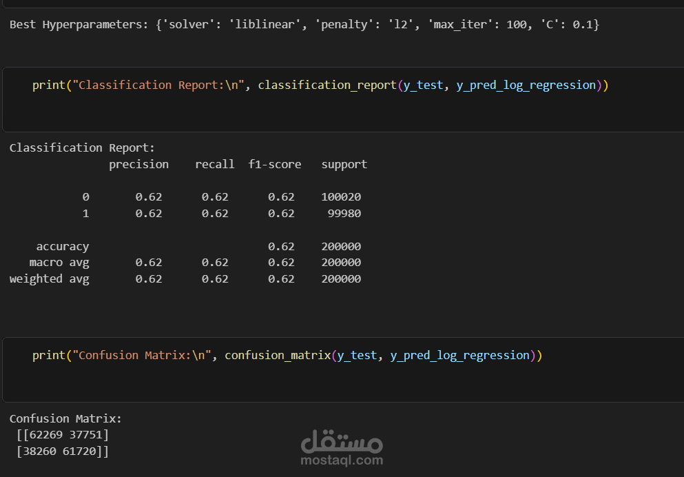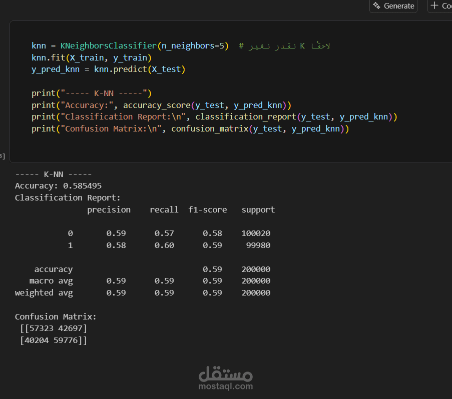 تطبيق نماذج التصنيف مثل Logistic Regression وRandom Forest وXGBoost.