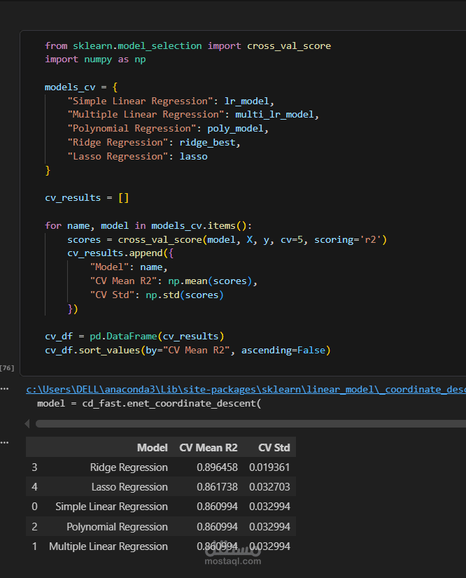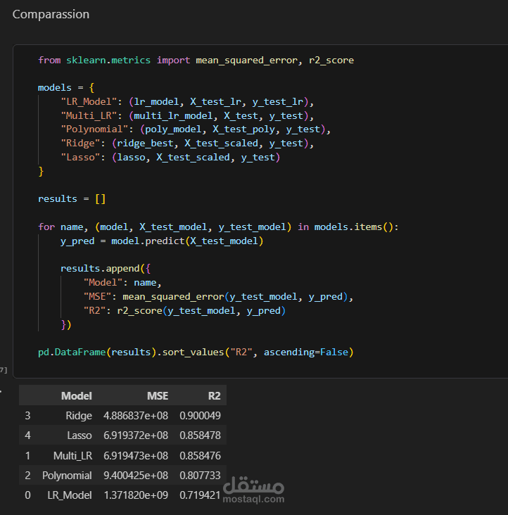 Tried and compared multiple regression models: