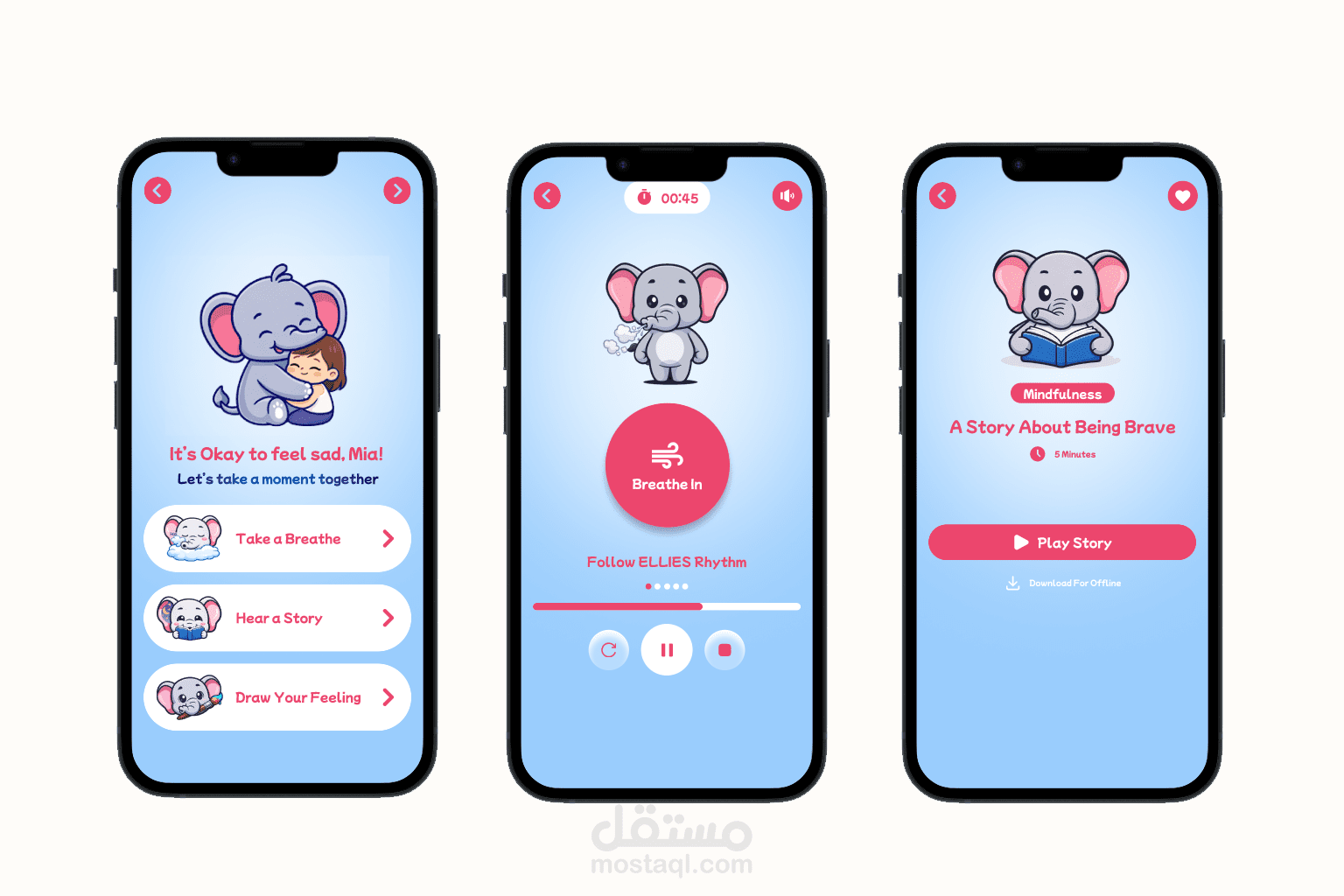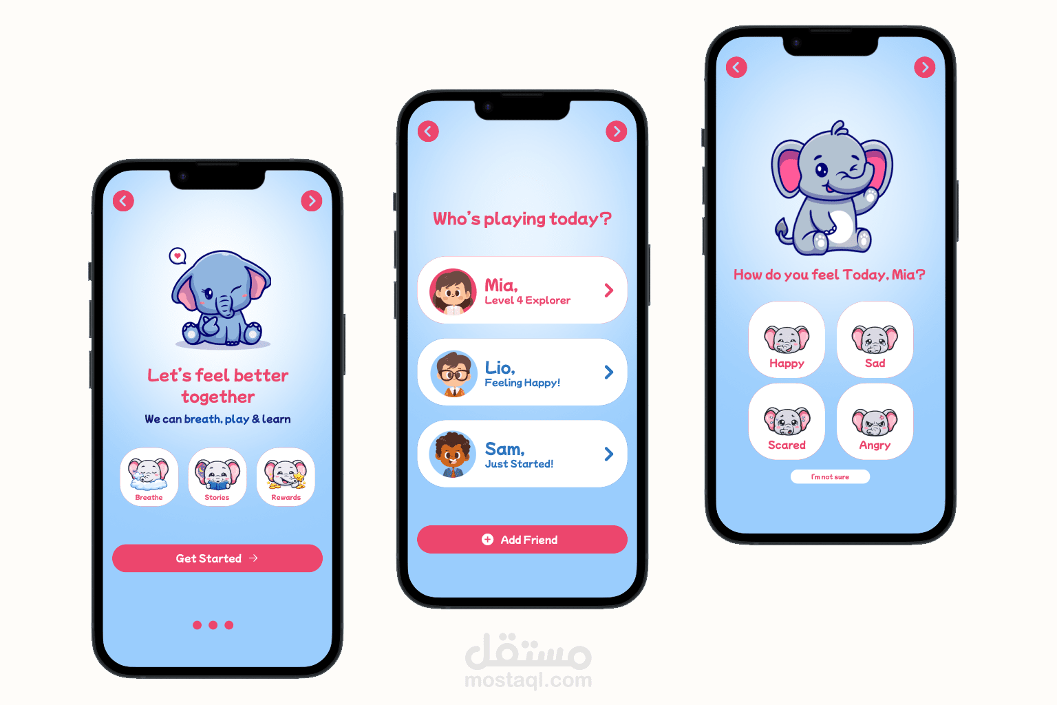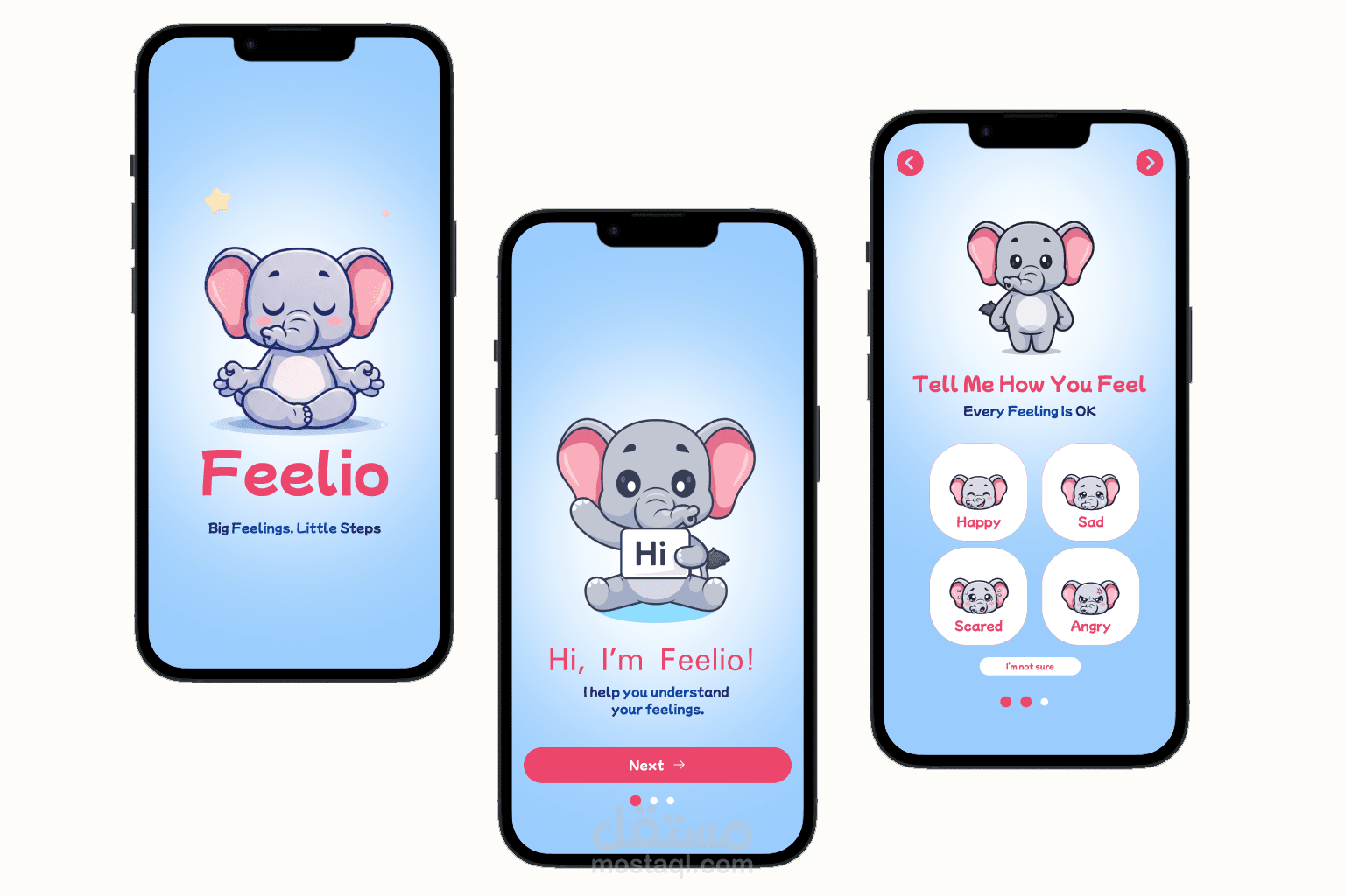 Feelio is a fun and engaging mobile app that helps children aged 4–9 recognize, understand, and express their emotions through mood check-ins, breathing exercises, storytelling, and creative activities. This UI/UX case study highlights the complete design journey—from user research and personas to empathy mapping, information architecture, and a playful visual system built around a lovable elephant mascot—delivering an intuitive, kid-friendly experience that makes emotional learning joyful, interactive, and meaningful.