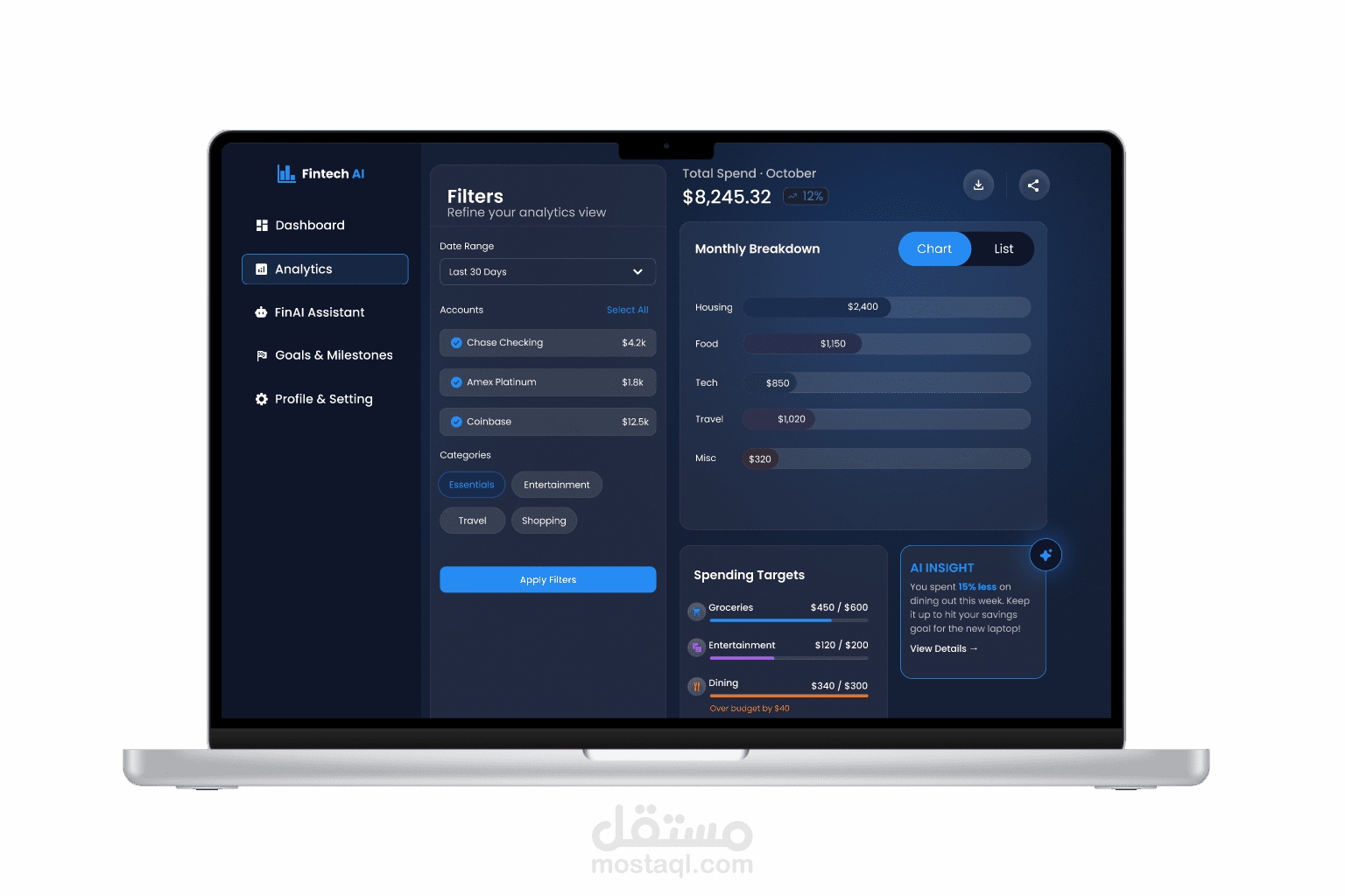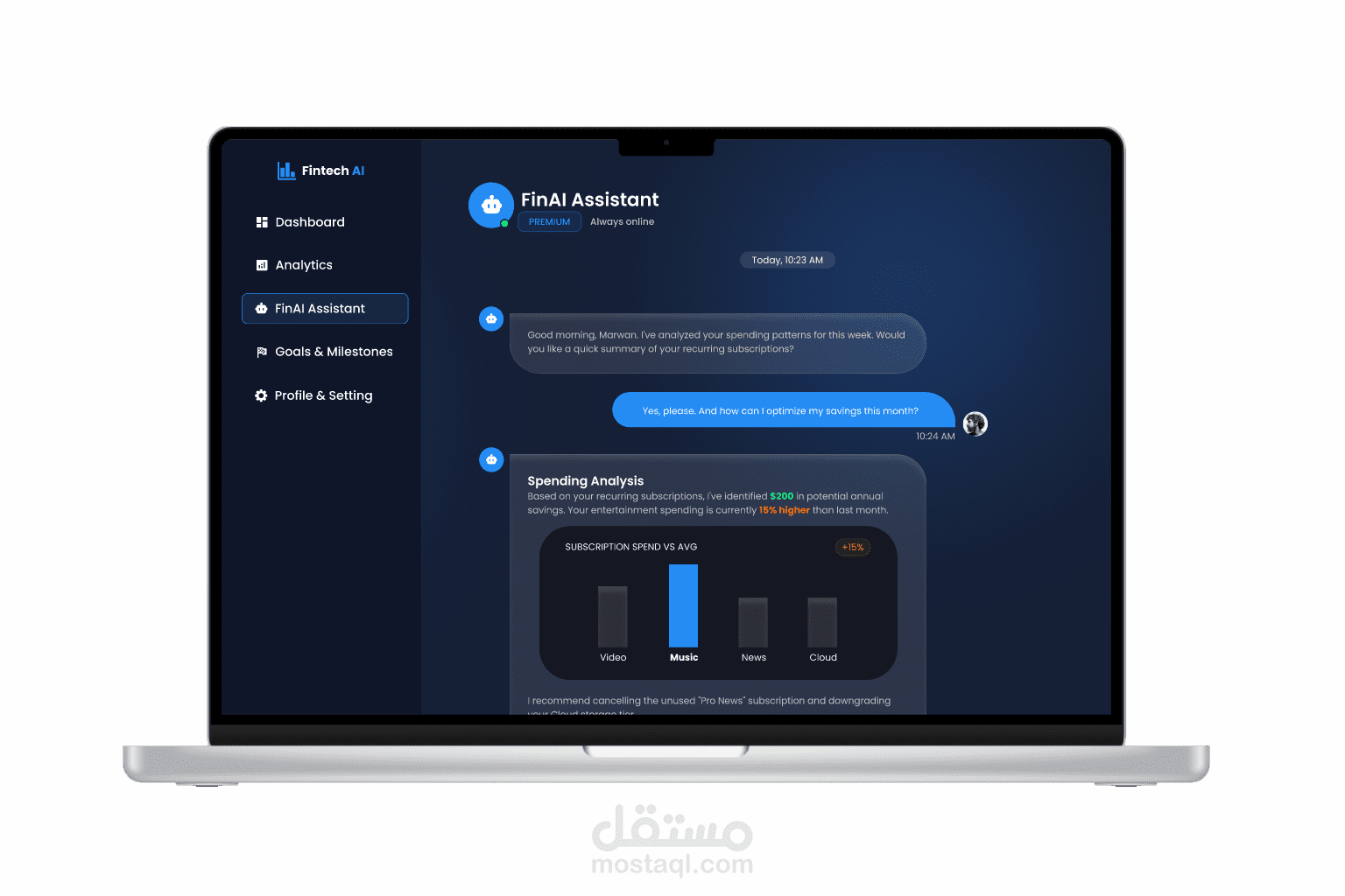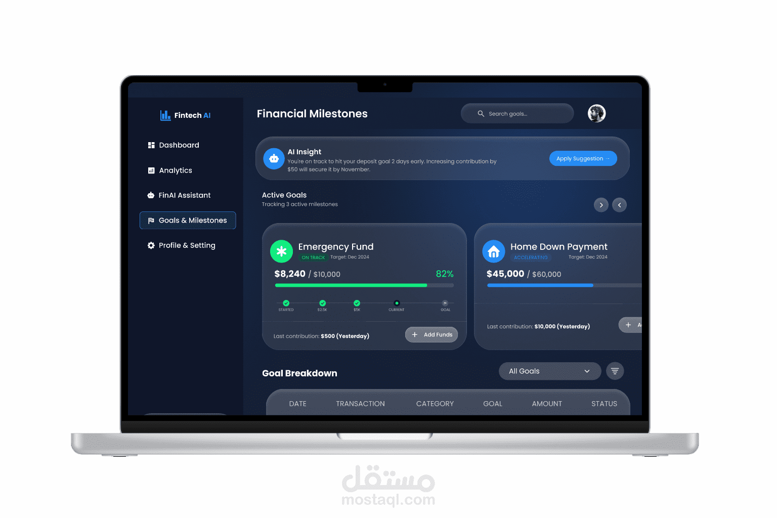 A modern AI-powered personal finance app designed to help users track expenses, set financial goals, and receive smart insights. This UX/UI case study showcases a user-centered fintech experience combining artificial intelligence with clean, intuitive design.