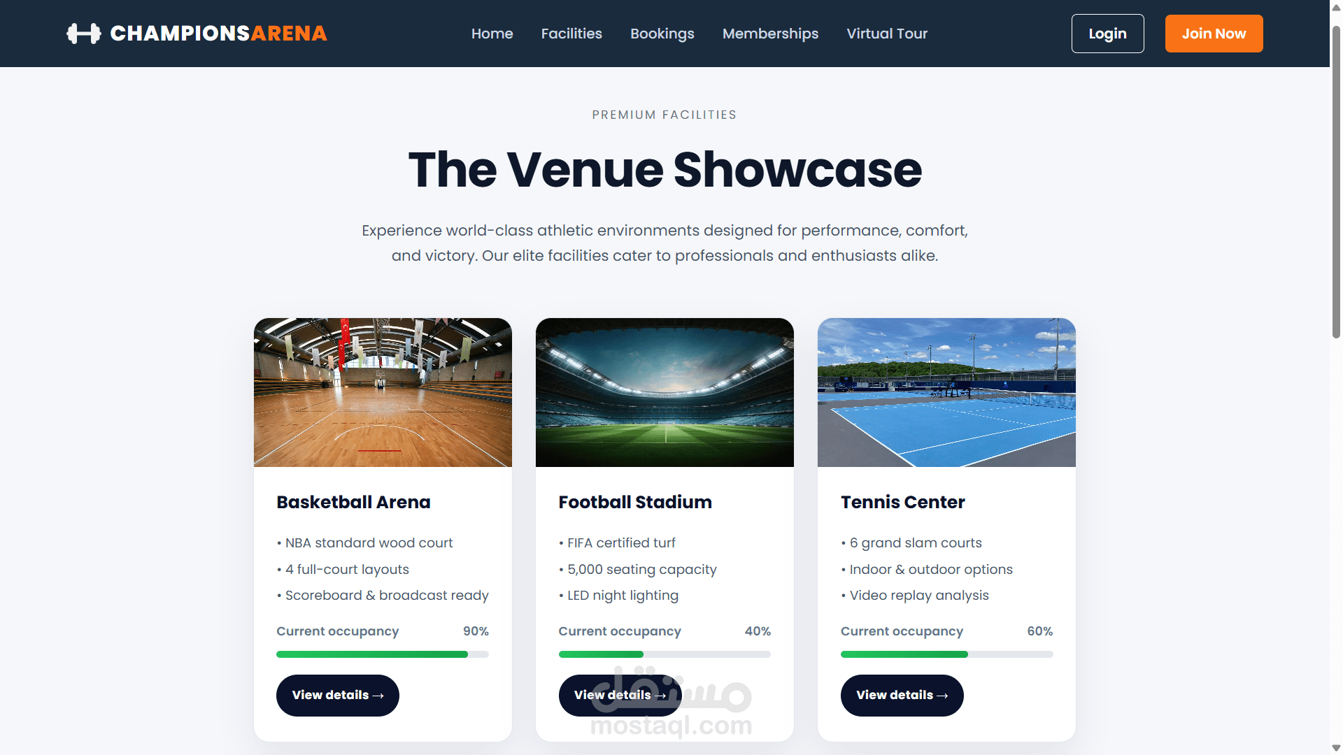 Sports Facility was the last project we were assigned to do at C2C in order to graduate and get our certificates. I was assigned as the team leader, leading a small and hardworking team to build this website using mainly JavaScript and ReactJS. We each worked on 2+ pages and i made all the routing and some the components that would be used across all the pages like the Navbar and Footer. We all put in our hard work to make sure we got the best results possible.