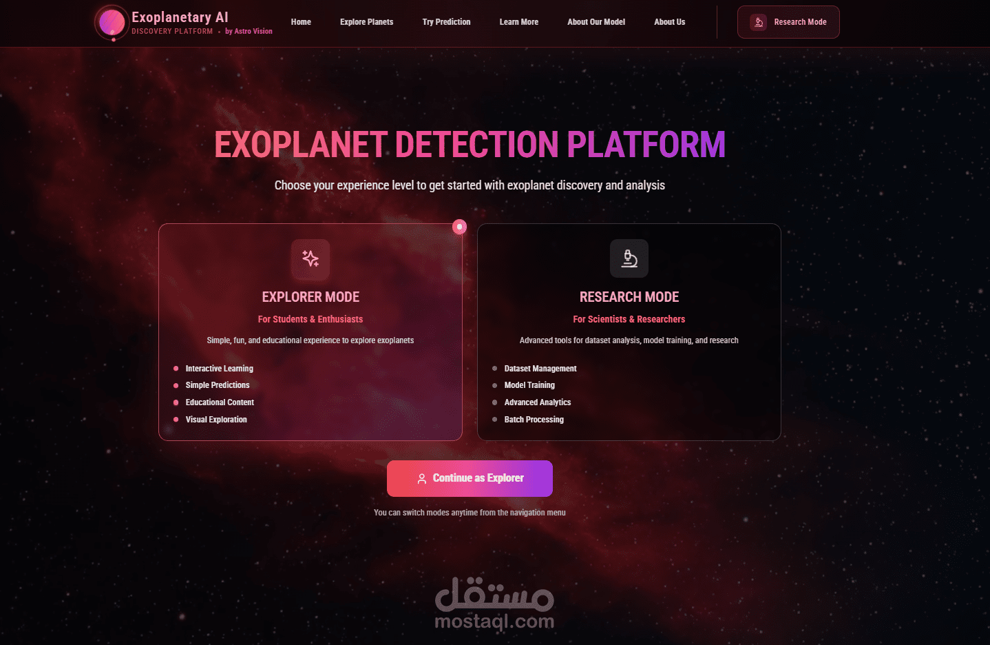 Exoplanets Discover Platform هي منصة تفاعلية بتساعد المستخدمين على استكشاف الكواكب خارج المجموعة الشمسية (Exoplanets)