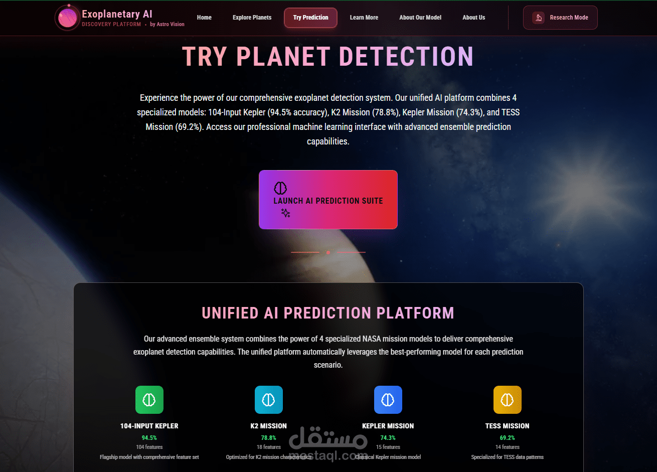 من خلال عرض البيانات الفلكية وتحليلها باستخدام تقنيات Machine Learning داخل واجهة استخدام حديثة وسهلة.