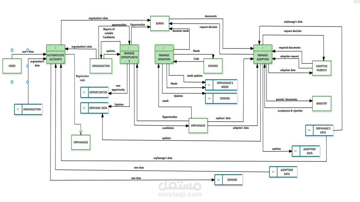 Additionally, the system will enhance communication by providing a structured process for adoptive parents. It will facilitate their initial contact with the Ministry of Social Solidarity to obtain approval and necessary documentation. Once approved, the system will guide them in identifying which orphanage, across the country, houses a child that meets their adoption criteria. And allow key stakeholders including donors, and job providers to interact directly with the system.