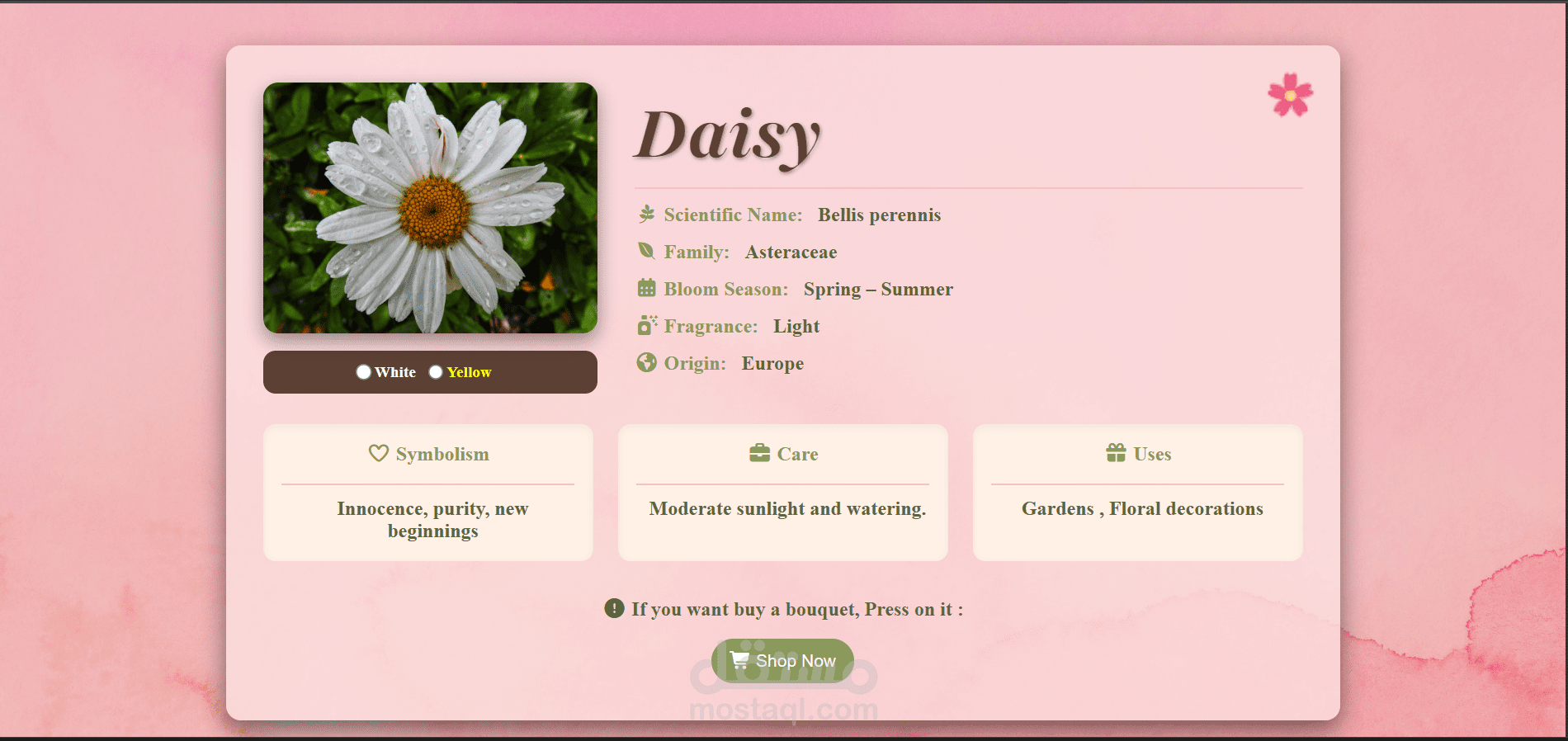 هذا المشروع عبارة عن Rose Shop ، قمت بتصميمه وتطويره بهدف التعلم وتنمية المهارات واكتشاف المجال اكثر.
