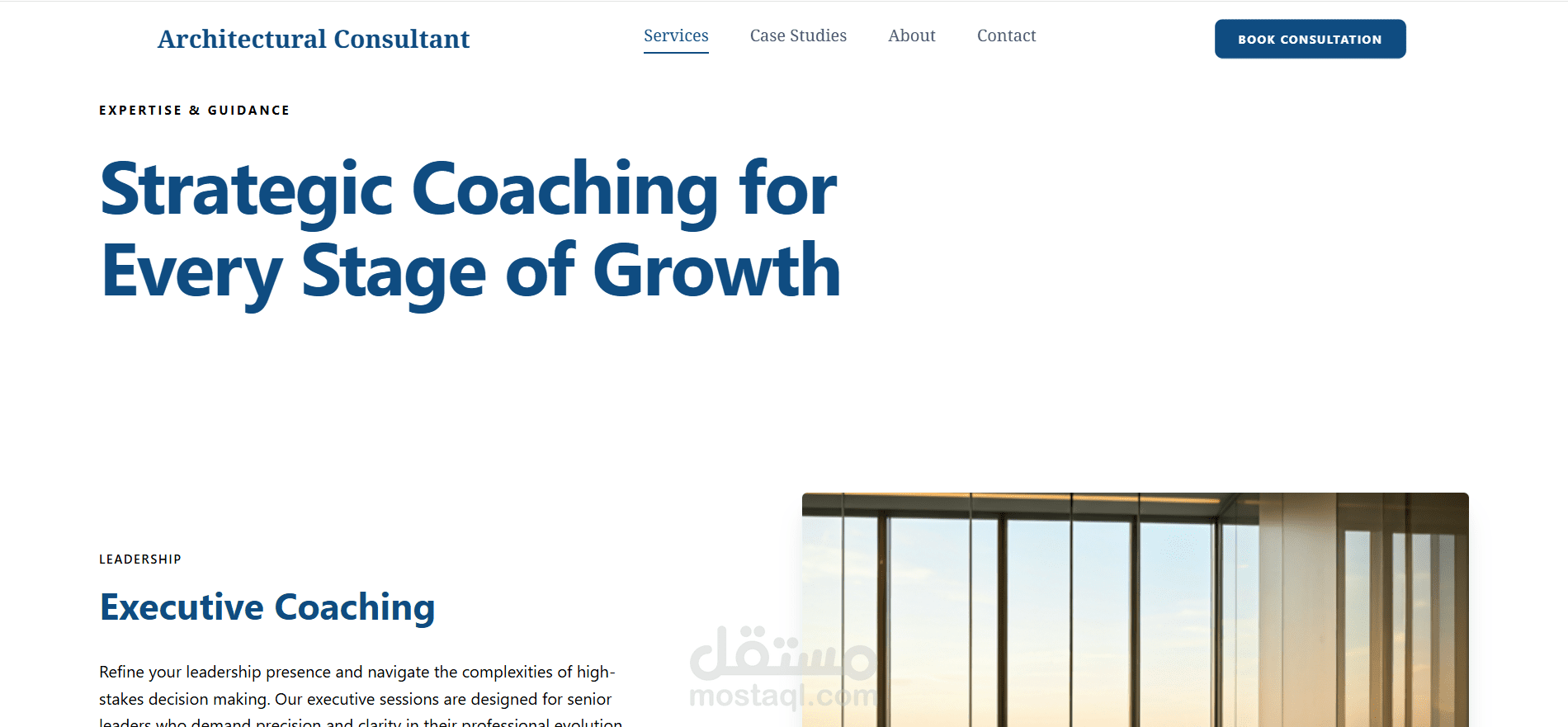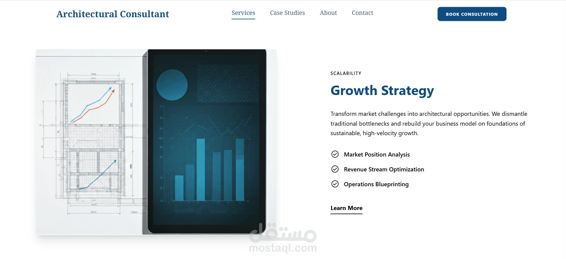 موقع تعريفي بخدمات مستشار معماري - تعريف بالخدمات والانجازات واستعراض الخطط والاستراتيجيات و وسائل التواصل